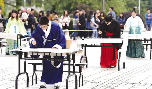挥毫遒劲书正气, 翰墨飘香展清廉。11月22日,新利·体育举办“学廉、倡廉、爱廉”书法大赛 ,此次大赛,将书法艺术和廉洁文化融合在一起,丰富了师生文化生活,推动学校廉政文化建设,弘扬风清气正的校园风气。 图为该院学生身着汉服在书写书法。匡皓 何帅文 摄。