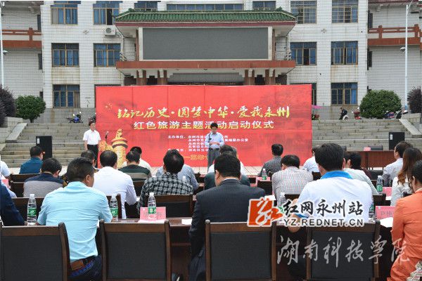 启动仪式上,活动主办方永州市旅游外事侨务局、永州市党史与地方征集编纂办公室、永州市教育局、共青团永州市委向全市发起了《关于共同推进红色旅游进校园、进社区、进景区活动的倡议》。倡导全市红色旅游优秀导游员、讲解员、党史专家、有关学者走进红色旅游景区、校园、社区,让群众在喜闻乐见中接受红色教育。永州市旅爸爸国际旅游咨询管理有限公司总裁宋国信代表旅游志愿者发言。