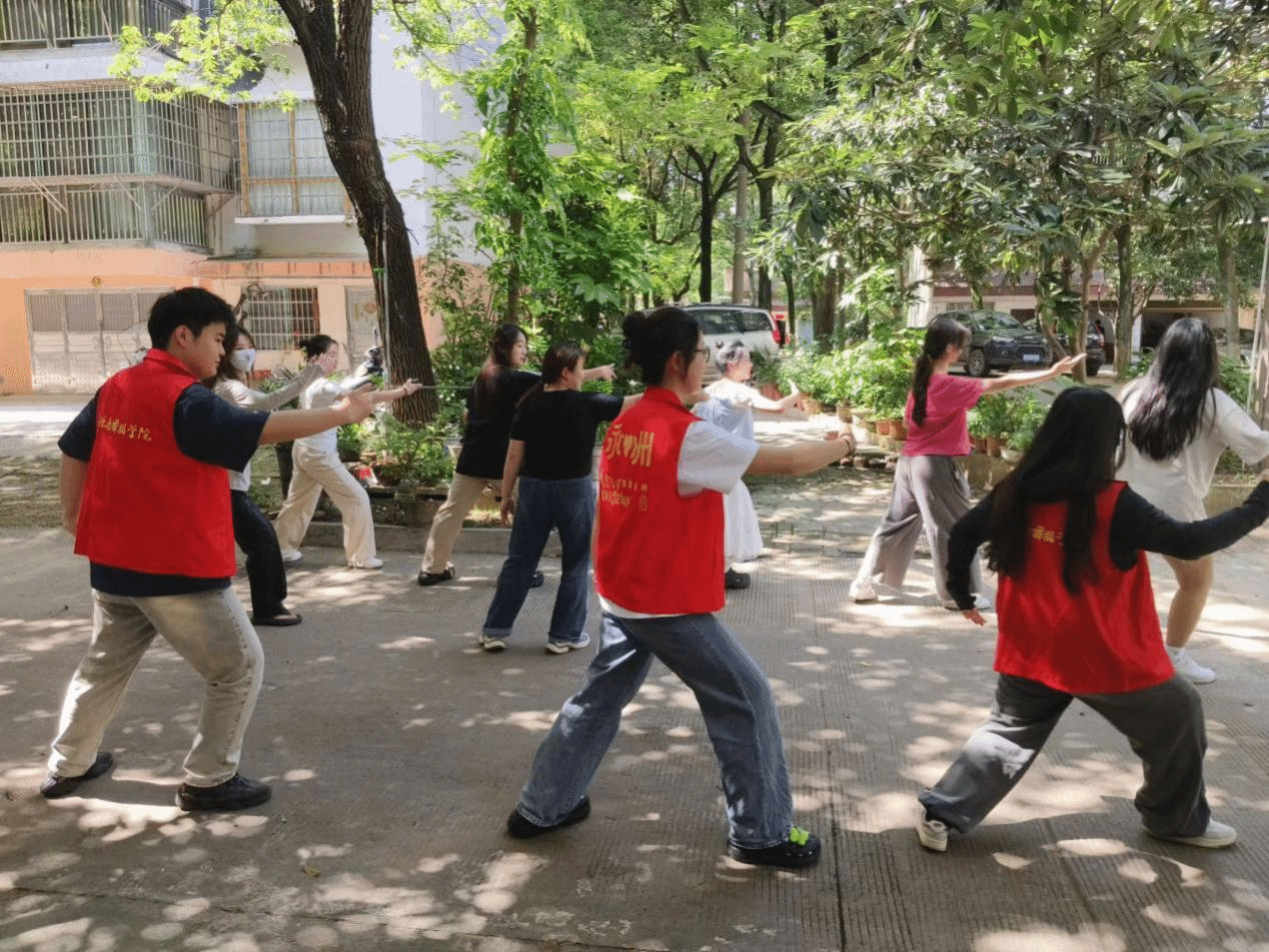 此外,同学们还结合专业特长,为居民们带来了太极表演。打太极作为中国传统健身方式之一,有助于调理身心特别是对预防高血压等慢性疾病具有积极作用。社区居民们热情高涨,现场氛围和谐有爱。