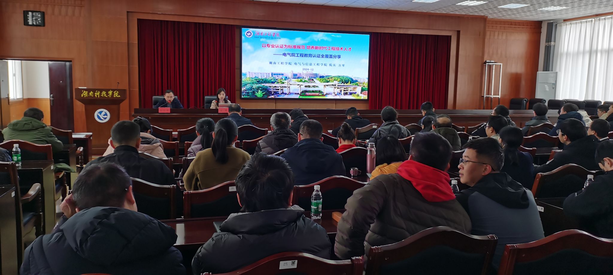本网讯(通讯员 周晓薇)为加快推进工程教育认证工作,理解与熟悉2024版工程教育认证标准内涵,切实提高我校新工科人才培养质量,12月19日,湖南工程学院万琴教授应邀在行政楼801作了题为“以专业认证为标准规范,培养新时代工程技术人才”的专题报告。信息工程学院、化学与生物工程学院、智能制造学院、土木与环境工程学院等4个学院的分管教学副院长、工程类专业系主任(含副主任),以及电子信息工程等7个专业的专任教师参加培训,培训由教务处副处长陈小明主持。