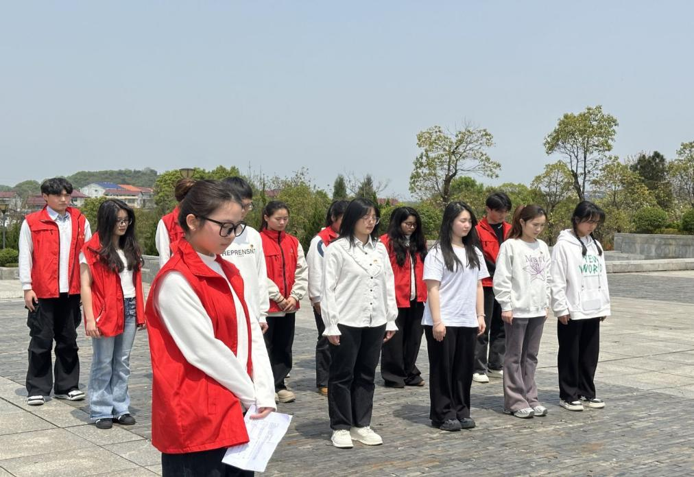 全体志愿者整理衣装,庄严肃立,面对革命烈士纪念碑默哀致敬,深切缅怀那些为民族解放事业英勇献身的革命先烈。志愿者和学生党员们还对烈士纪念园进行了清扫工作,同学们认真擦拭纪念碑的碑基、清理步道上的落叶,整理纪念碑前的鲜花,以实际行动表达对先烈的崇高敬意。