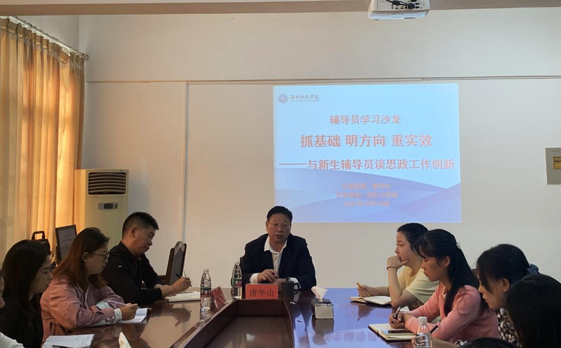 本网讯 10月19日上午,为深入学习贯彻党的二十大精神,学生工作部组织全体新生辅导员和新进辅导员开展主题为“抓基础、明方向、重实效,与新生辅导员谈思政工作创新”的学习沙龙,沙龙由新利·体育思想政治工作研究所唐华山教授主讲,学生工作部部长谷利民主持。