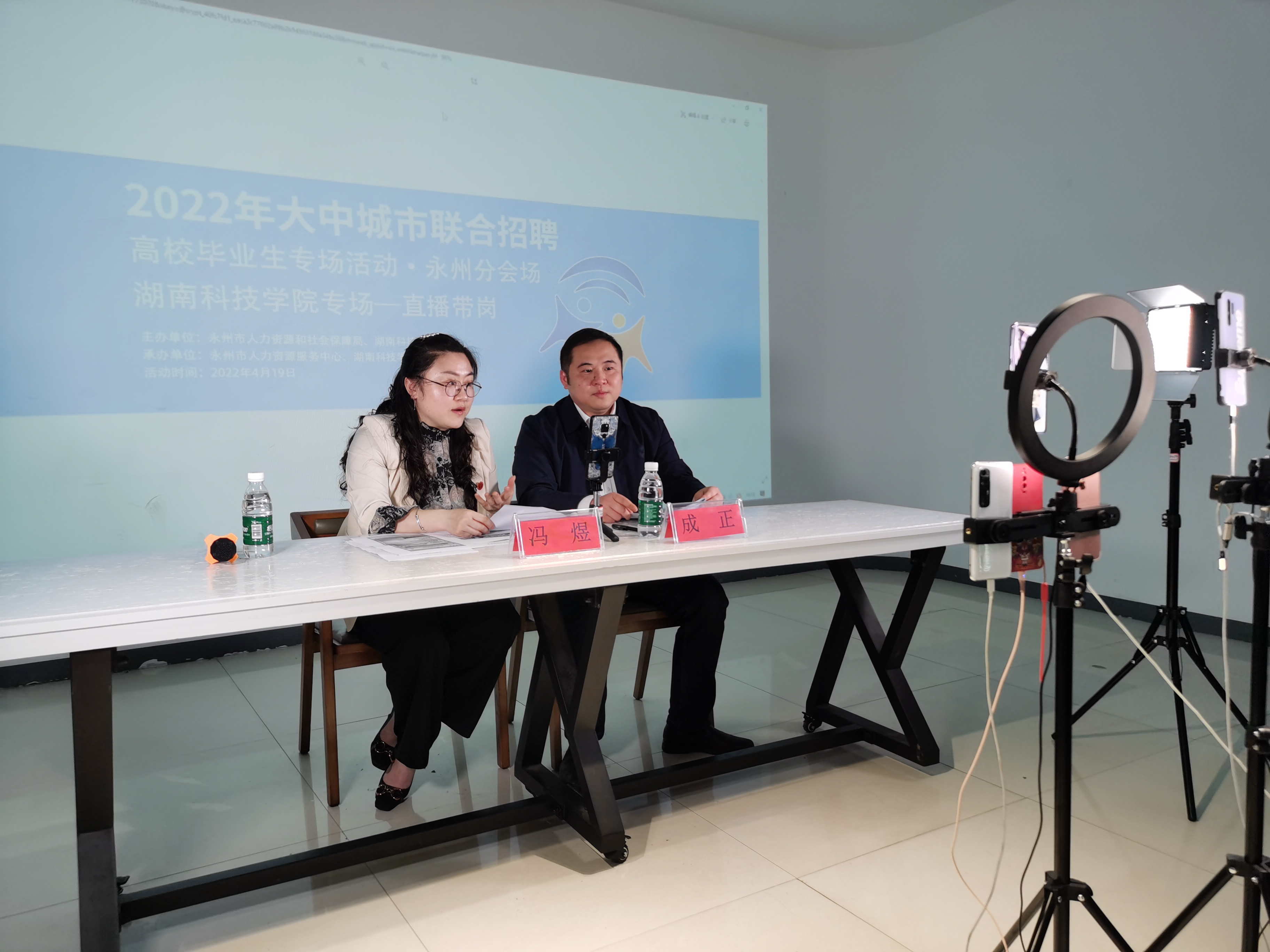 本网讯“创业贷款怎么申请?”“就业见习到哪报名?”“有入职培训吗?”……4月19日下午,永州市2022年大中城市联合招聘高校毕业生新利·体育直播带岗专场在创新创业学院举行,活动在新利·体育视频号、永州智慧就业视频号和抖音号等平台同步直播。副校长郑银芳、永州市人社局副局长蒋新山莅临现场指导。