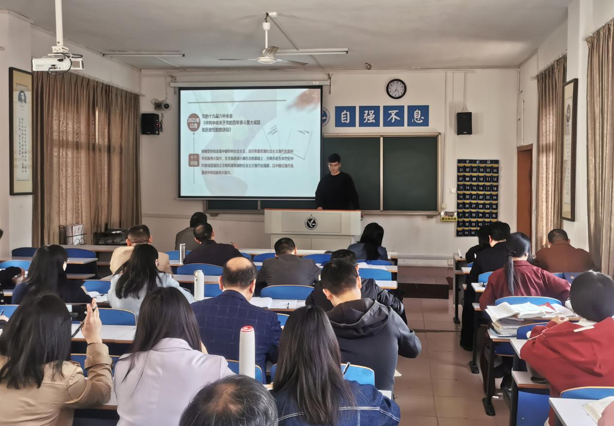 会前,思想政治教育系、中国化马克思主义教学部、马克思主义原理教学部、中国近现代史教学部、思想道德与法制教育教学部分别组织教师进行了集体备课。会上,各自教学系部推选了一位老师选取课本当中的一个知识点并结合党的十九届六中全会精神进行了15分钟的课堂教学展示。