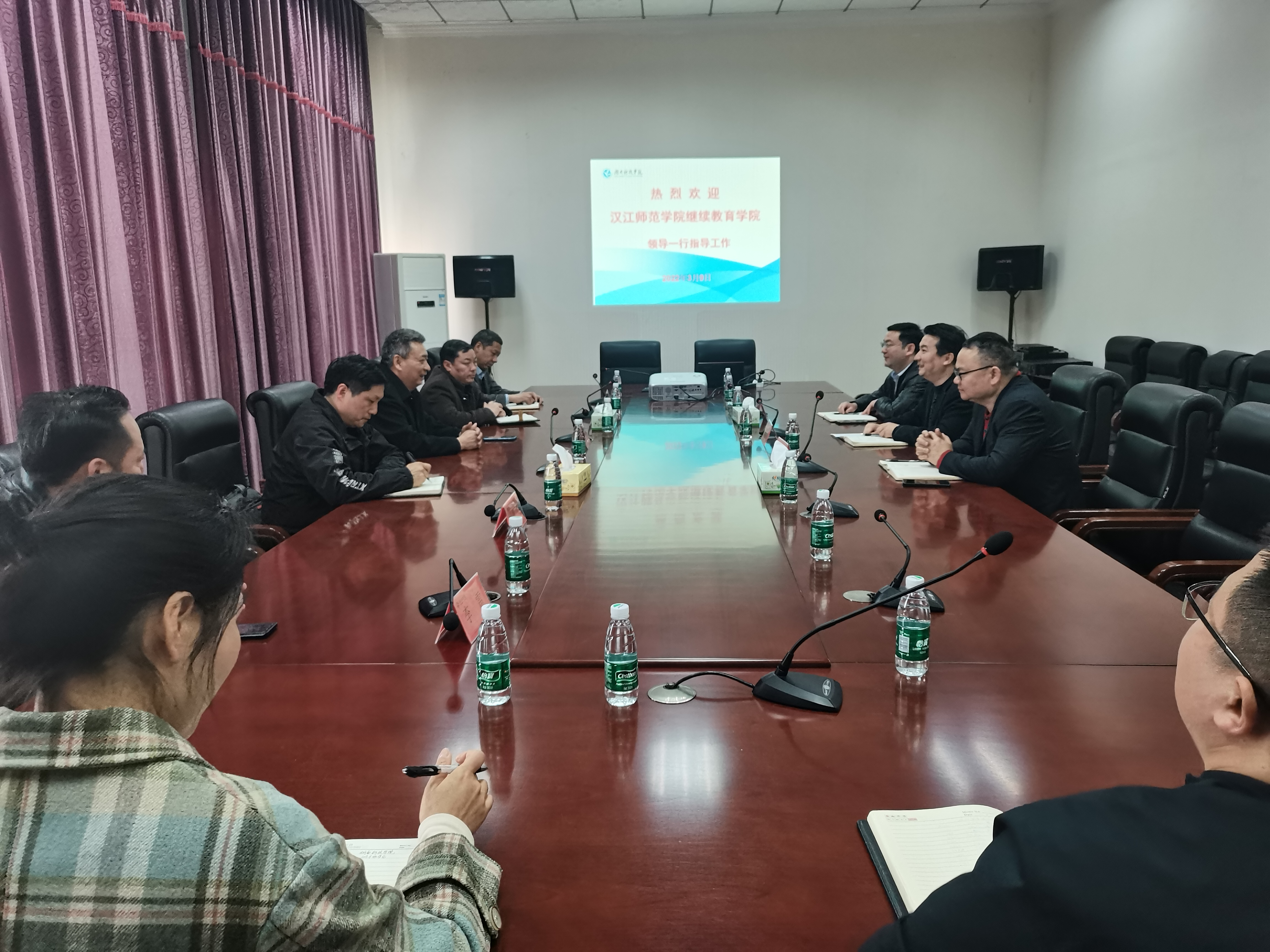 本网讯 3月9日上午,汉江师范学院继续教育学院院长刘宏一行来校考察交流,继续教育学院唐君热情接待刘宏一行。双方进行了座谈会,就学历教育招生和教学管理、继续教育网络服务平台建设以及非学历教育进行深入交流。