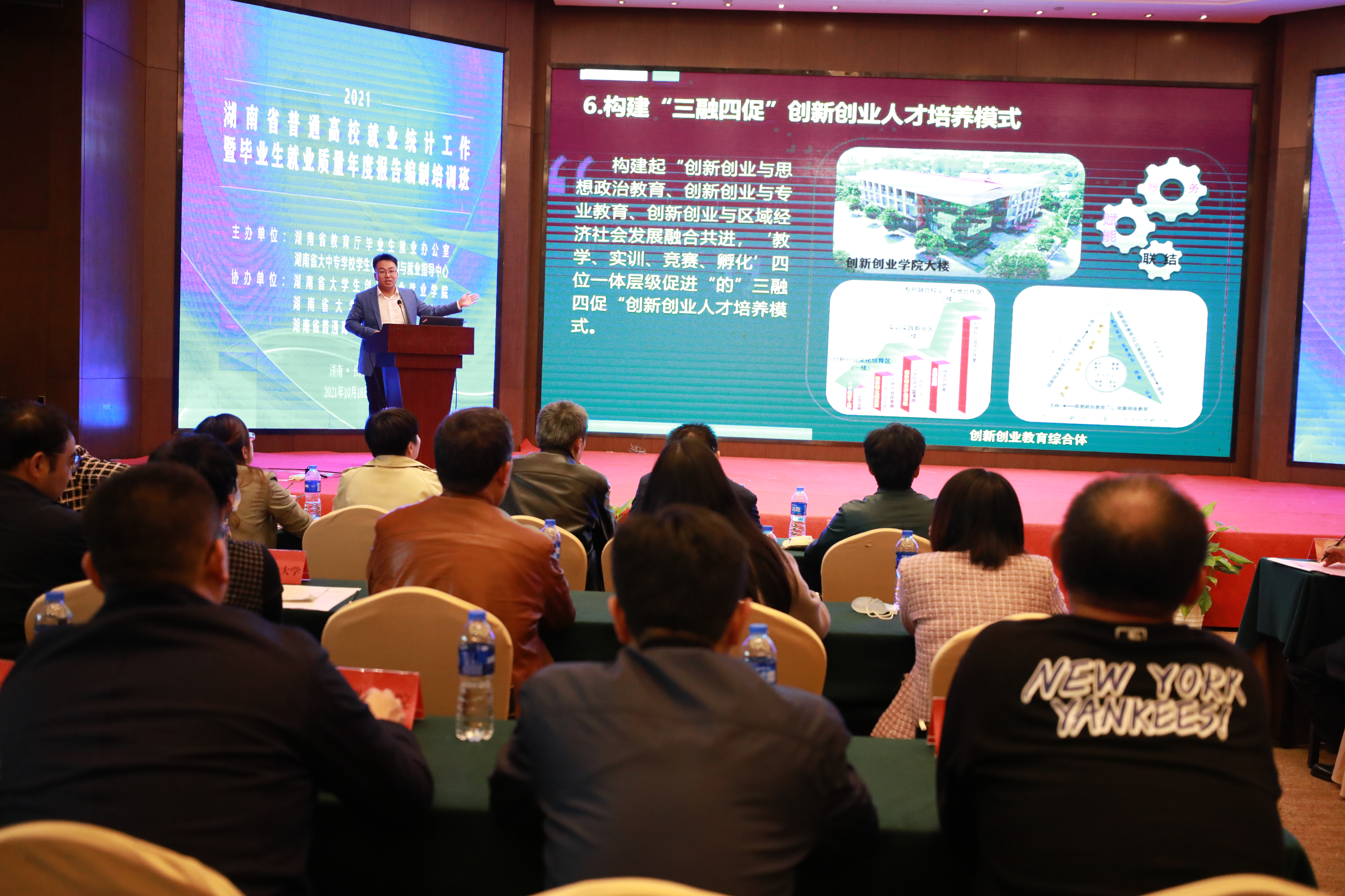 本网讯 10月18日,2021年湖南省普通高校就业统计工作暨毕业生就业质量年度报告编制培训班在长沙举行。全省100多所高校的就业工作相关负责人参加了会议。我校应邀做了经验交流发言。