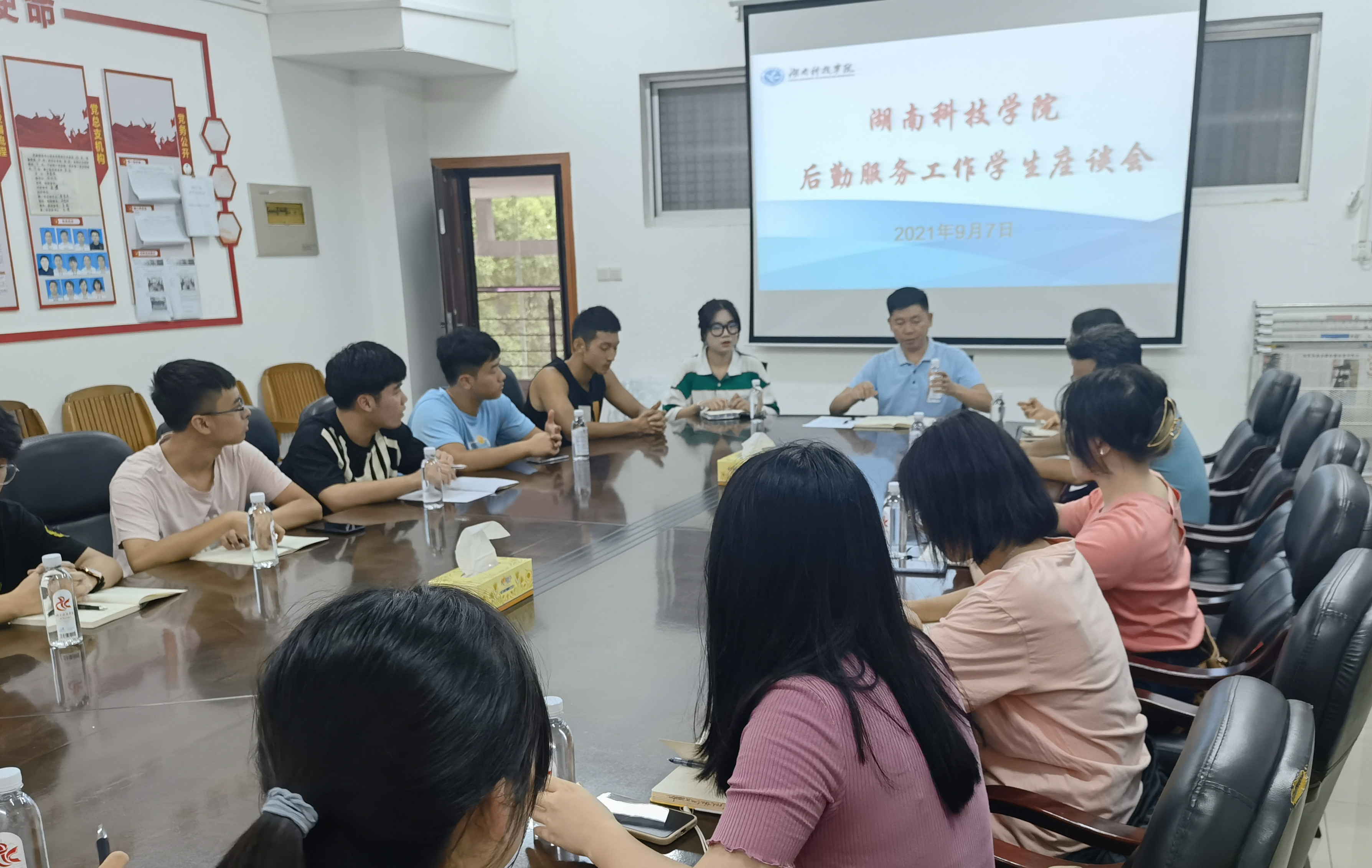 本网讯 9月7日中午,后勤服务中心在行政楼212会议室召开后勤服务工作学生座谈会,中心主任谷利民、饮食服务部负责人、校学生民主生活管理会、后勤信息员及各院学生代表等参加会议。