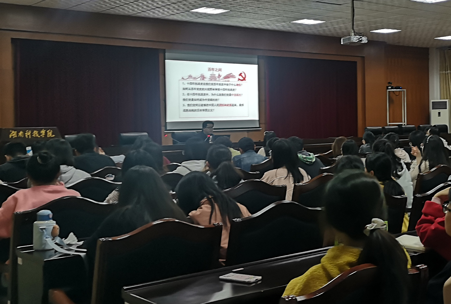 胡艺华作了题为《抗战岁月与黄河绝响》的讲座。胡艺华教授以大合唱《黄河大合唱》为切入点,讲述了《黄河大合唱》创作的时代背景以及背后的故事,阐述了中国共产党为什么是抗战的中流砥柱。他让大家从音乐背后的故事了解一个时代,在旋律中感悟歌词背后所蕴含的崇高的革命精神。他希望同学们增强使命感和责任感,做自强、爱国、有担当的大学生。