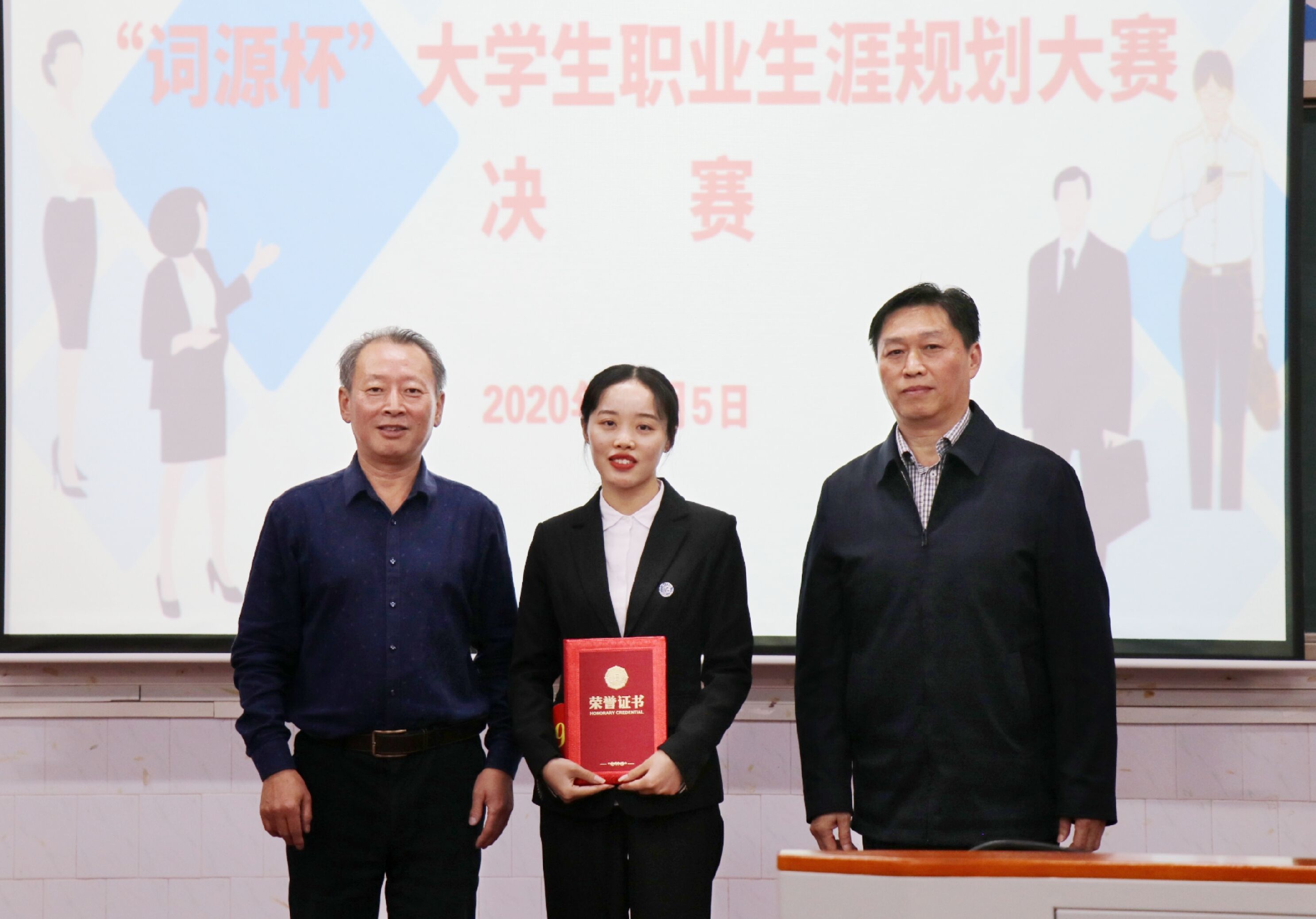 本网讯 11月6日晚,外国语学院在博雅楼举办了2020年大学生职业生涯规划大赛决赛。湖北词源教育投资管理有限公司副总经理阳健龙、人力资源总监李叶琴、校园招聘主管吴天宇担任比赛评委,该院院长欧华恩、党总支书记雷树彬、党总支副书记罗晶以及全体辅导员参加活动。