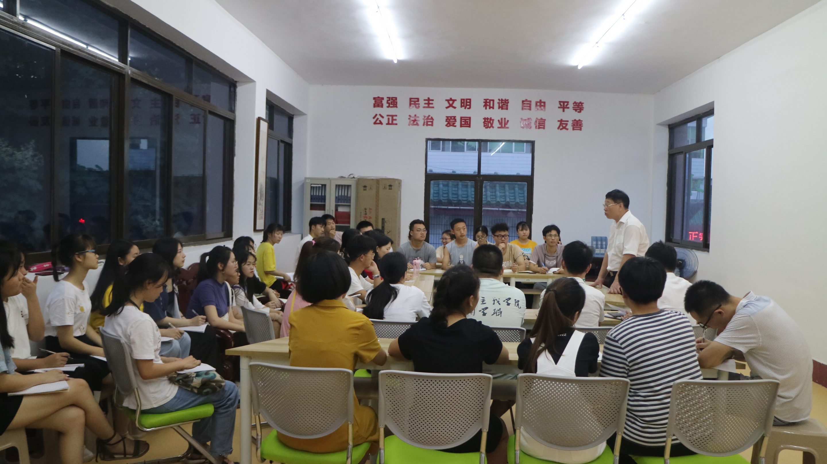 本网讯 6月18日晚,由习近平新时代中国特色社会主义思想研究与实践协会举办的“新思想课堂”首次开讲,邀请学工部长唐华山主讲。马克思主义学院党总支书记郑向晖及该协会会员等50余人参与活动。