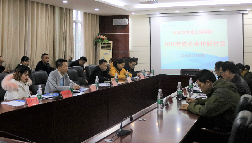 本网讯 为深化教育教学改革,积极探索校企合作人才培养新模式,12月6日下午,化学与生物工程学院在逸夫楼举行2018年校企合作研讨会。该院专职组织员赵雨云、副院长刘小文、党总支副书记任学兵、各企业用人单位代表以及部分学生代表参加了研讨。