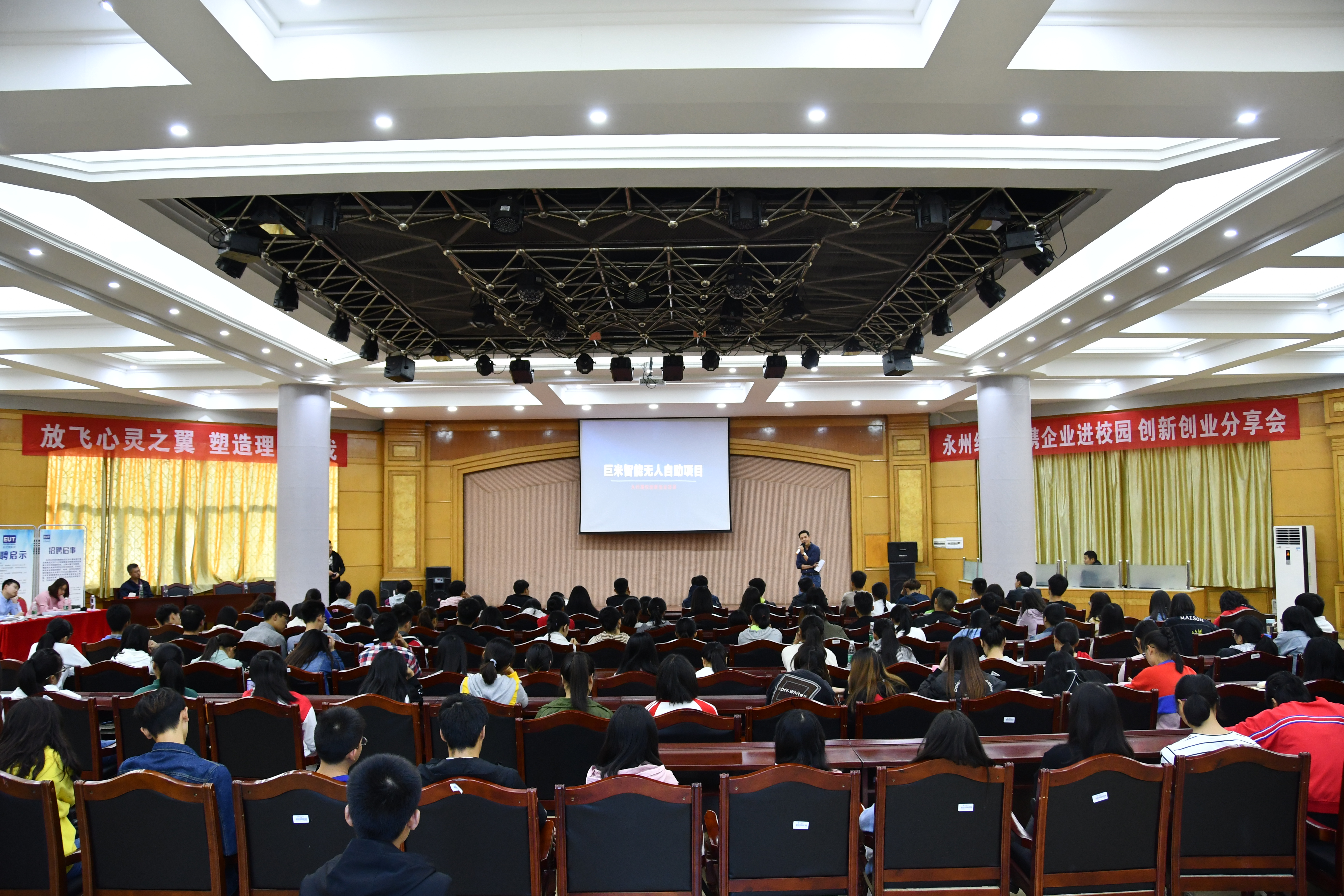 分享会上,韬讯无人机、巨米科技、中国科技开发院(永州创新孵化基地)等科技创新型企业负责人结合创业经历,为活动现场师生奉献了一场关于“创新创业方式方法”的精彩演讲。同时,企业负责人就产品设计理念、应用领域、发展前景与运营模式等进行了精彩展示。分享会后,创业分享人、企业负责人与我校学生进行了现场互动答疑,根据学生创业项目的创新优势、市场前景等进行了分析并提出改进意见和建议。参与此次分享会的同学纷纷表示收获很大,它为我们提供了与优秀企业面对面的机会,给应届大学生创新创业项目落地营造了良好的氛围,对我们学生创业也起到很大的鼓舞和辅助作用,也将激励更多大学生在“双创”时代奋发进取、追梦圆梦。