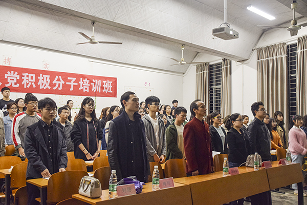 典礼在雄壮的国歌中开始,蒋诗堂作了动员讲话,他肯定学员们的正确选择、所付出的努力和所取得的进步,希望所有学员珍惜机会,真学真做,真心实意争取入党。随后,蒋诗堂为学员上第一堂课:《中国共产党的光辉历程》。