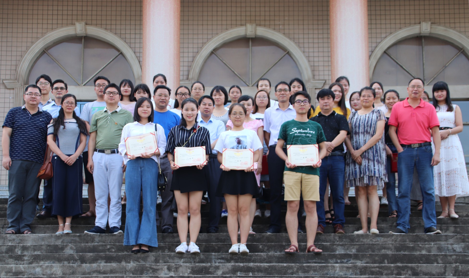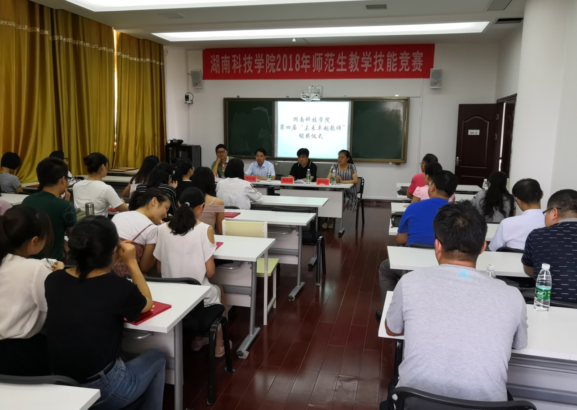 本网讯 7月4日下午,我校第四届“未来卓越教师”教育教学知识与教学技能竞赛颁奖仪式在教师教育学院举行,副校长李常健、教务处副处长包本刚、教师教育学院副院长潘庆红以及获奖学生及其指导老师等30余人参加,教师教育学院院长杨再喜主持颁奖仪式。