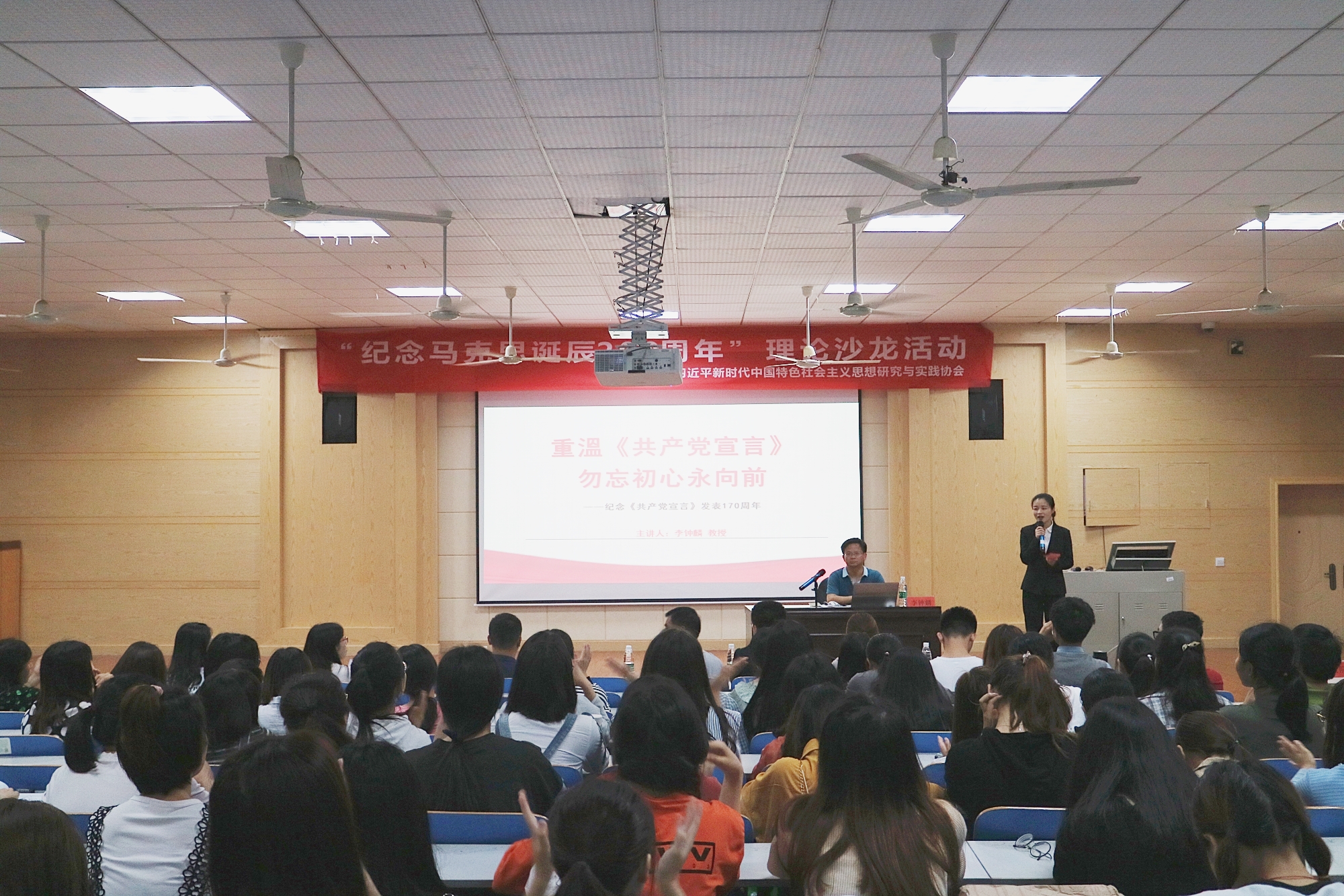 本网讯   6月1日晚,由马克思主义学院主办,习近平新时代中国特色社会主义思想研究与实践协会承办的“纪念马克思诞辰200周年”理论沙龙活动在学校致远楼701举行。马克思主义学院党总支书记唐森树、党总支副书记李观求及学院教师出席活动。全校各学院300余名同学积极参与本次活动。