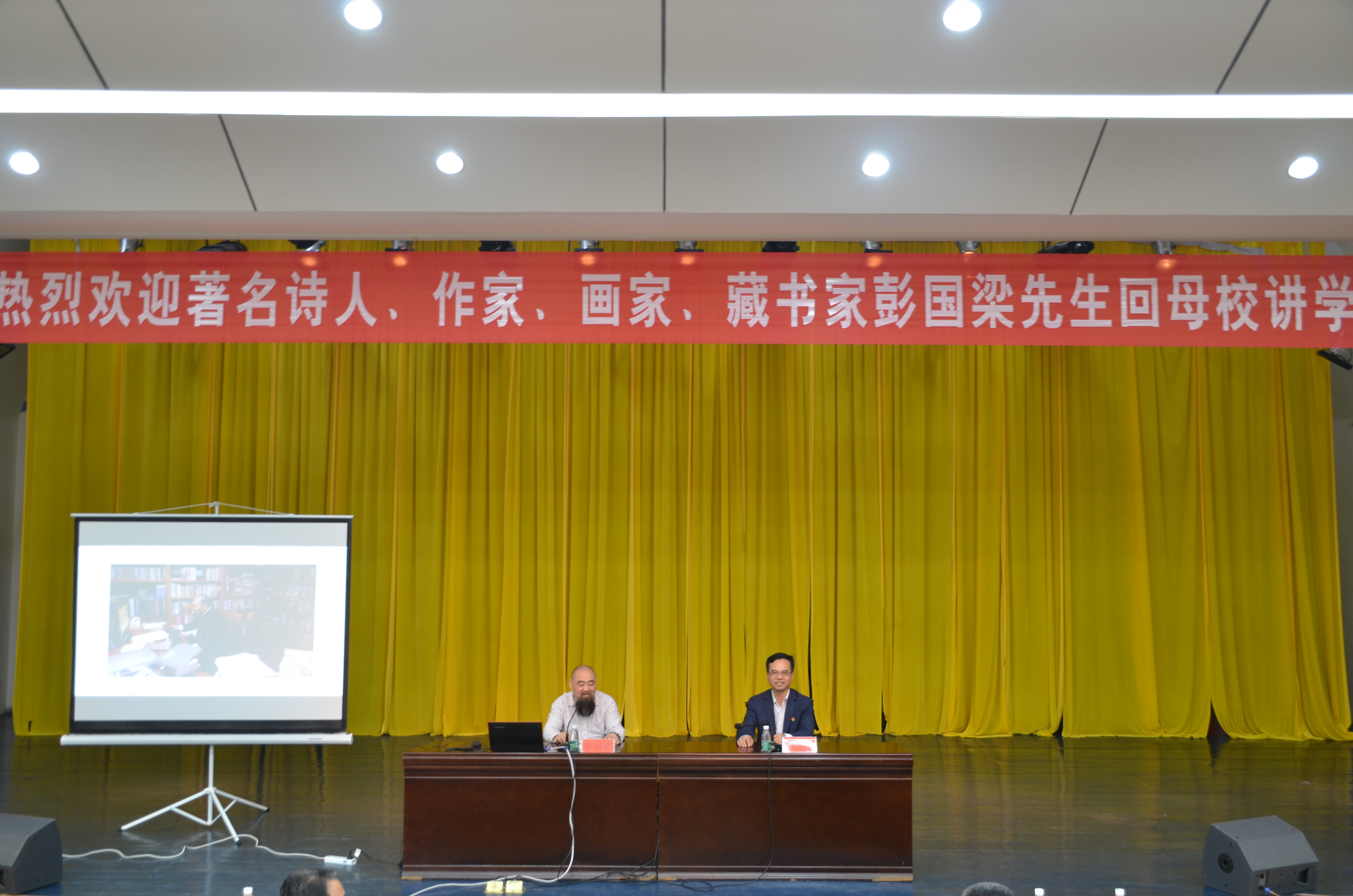 本网讯 4月12日,知名作家彭国梁应邀回母校与学弟学妹聊人生谈读写,向同学们叙述“近楼书虫母校情”。校党委书记陈弘出席,人文学院党总支书记谷显明主持。本次报告会是我校创意写作坊成立后的第一堂校友作家讲座。