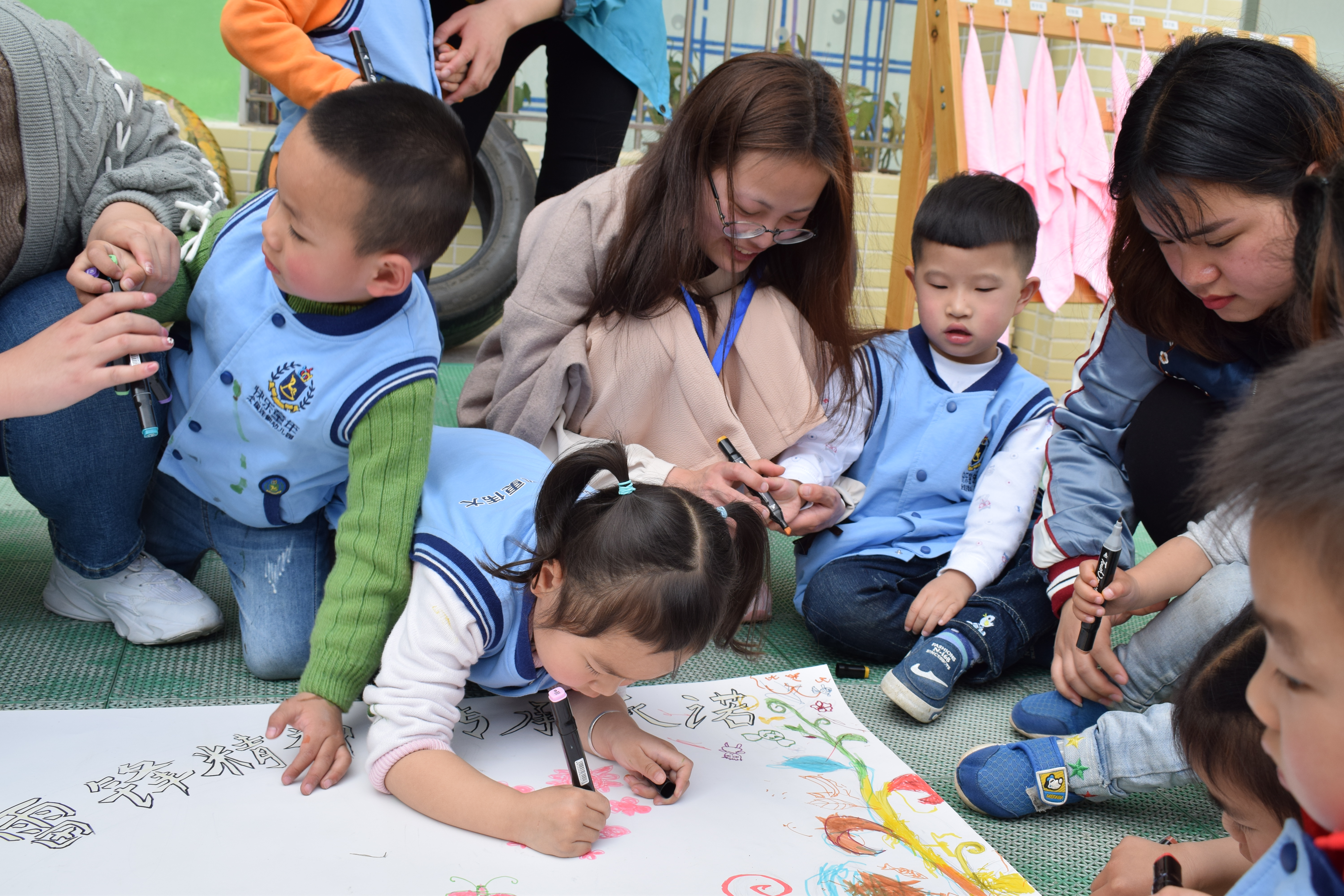 志愿者们分组为幼儿园的孩子们讲述雷锋的故事,并与孩子们一起将故事中的人物画在海报上。活动的最后,志愿者与孩子们在欢声笑语中,共同将涂上颜料的手掌印在了实践雷锋精神承诺的海报上。