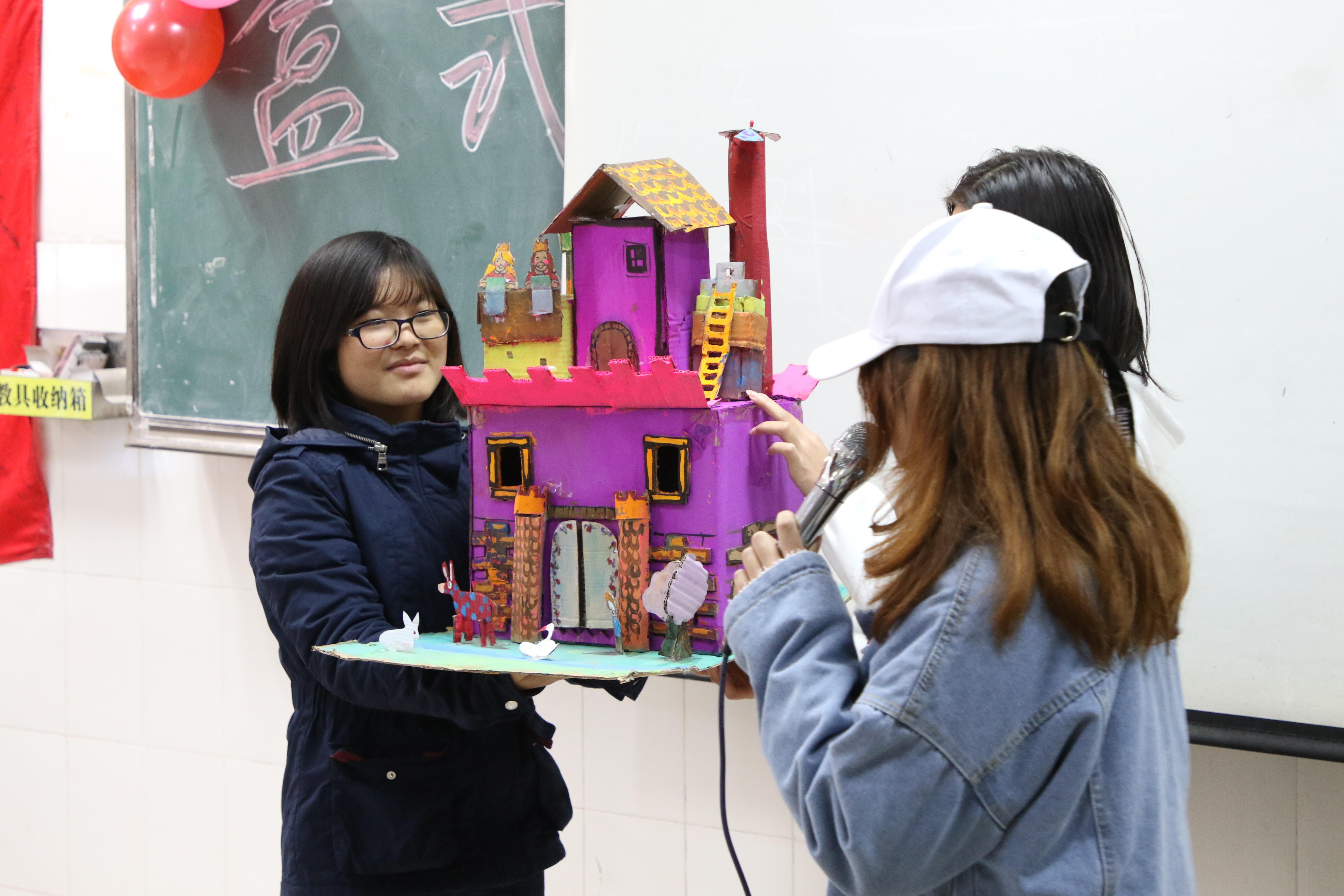 活动中,每个参赛小组携作品上台展示,解说作品的设计理念、实用性以及作品意义。参赛选手通过创意设计制作,把快递盒“大变身”,制作成环保美观的工艺品。有的成为精致的书架和和抽屉,有的变成了漂亮的摩天轮和船舶模型。作品新颖的创意和精巧的制作也赢得大家的点赞,大家纷纷惊叹选手们的脑洞大开,废弃的快递盒还可以变成精美实用的工艺品。