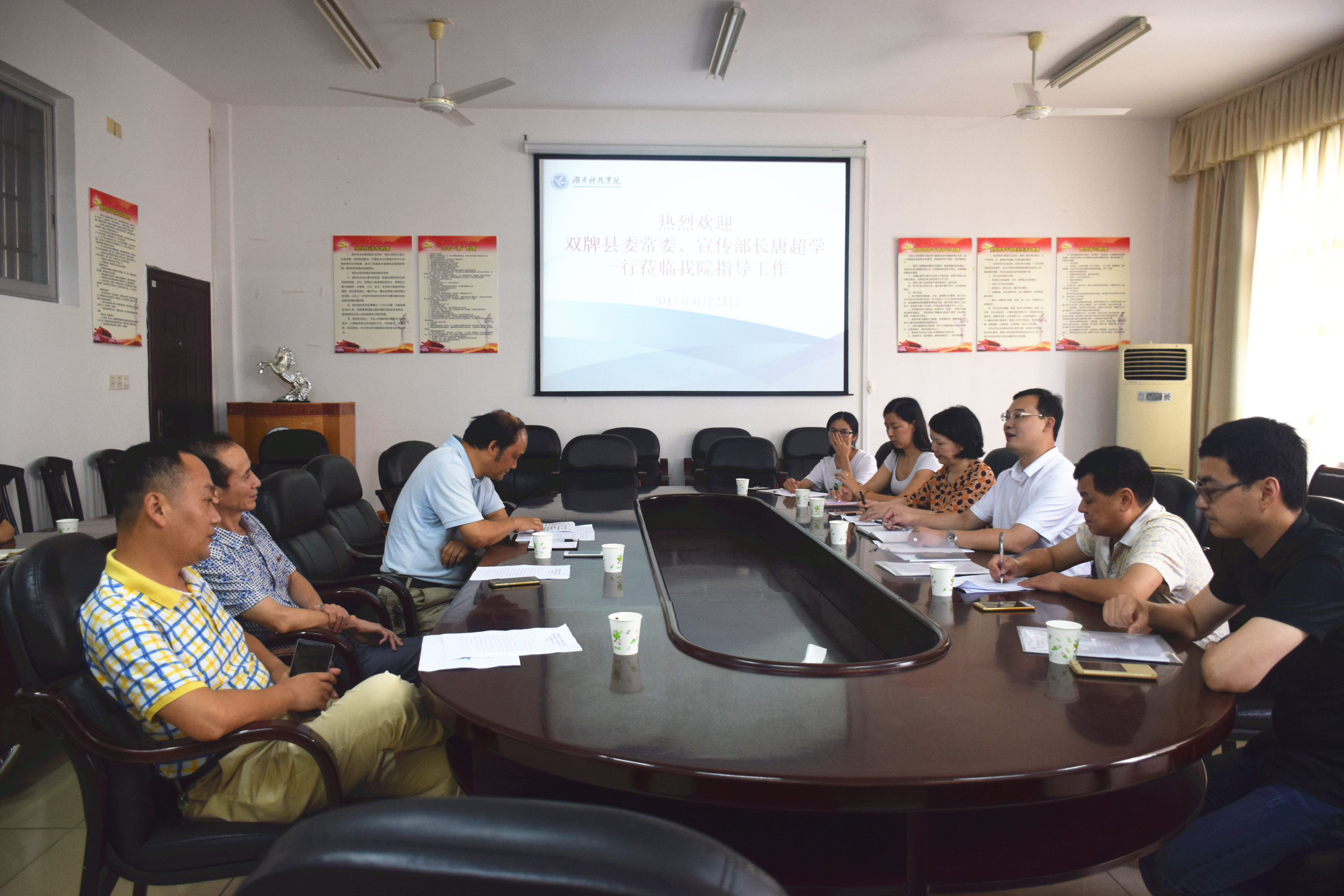 本网讯 6月21日下午,永州市双牌县委常委、宣传部长唐超学一行来传媒学院就深化校地合作进行协商洽谈,宣传统战部部长杨涛、传媒学院党总支书记蒋诗堂出席洽谈会,该院院长杨增和主持洽谈会。