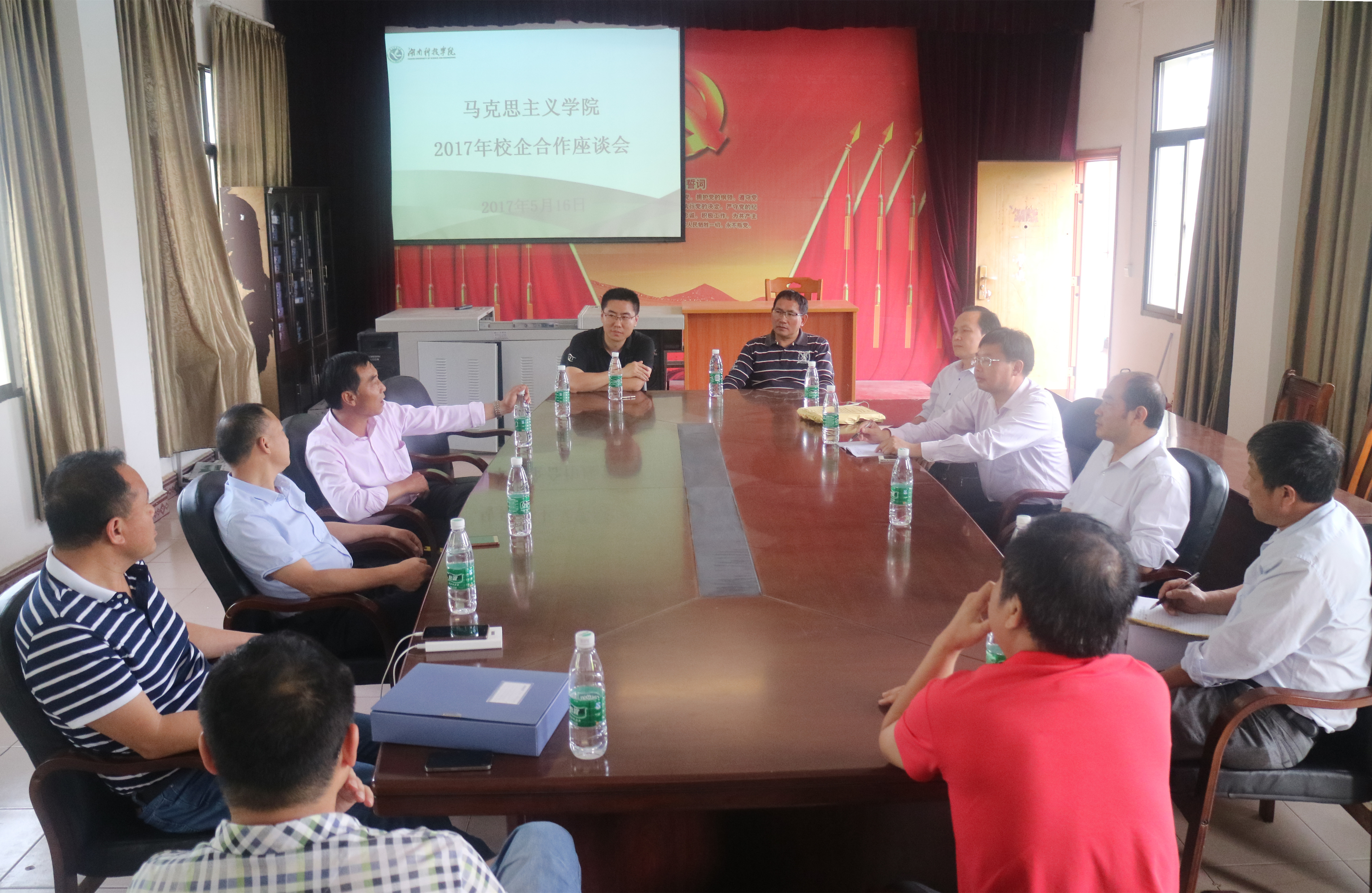 招聘会开始前,马克思主义学院党总支书记唐森树、党总支副书记李观求与用人单位负责人举行了校企合作座谈会,双方就人才培养和供需进行了深入交流,并就长期合作达成共识