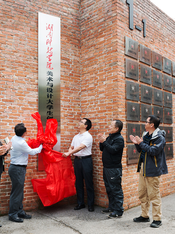 本网讯 4月22日,美术与艺术设计大学生创新创业实践基地在长沙后湖国际艺术区正式挂牌,校党委书记陈弘与长沙后湖(国际)文化有限公司董事长赵荣军博士共同为基地揭牌。