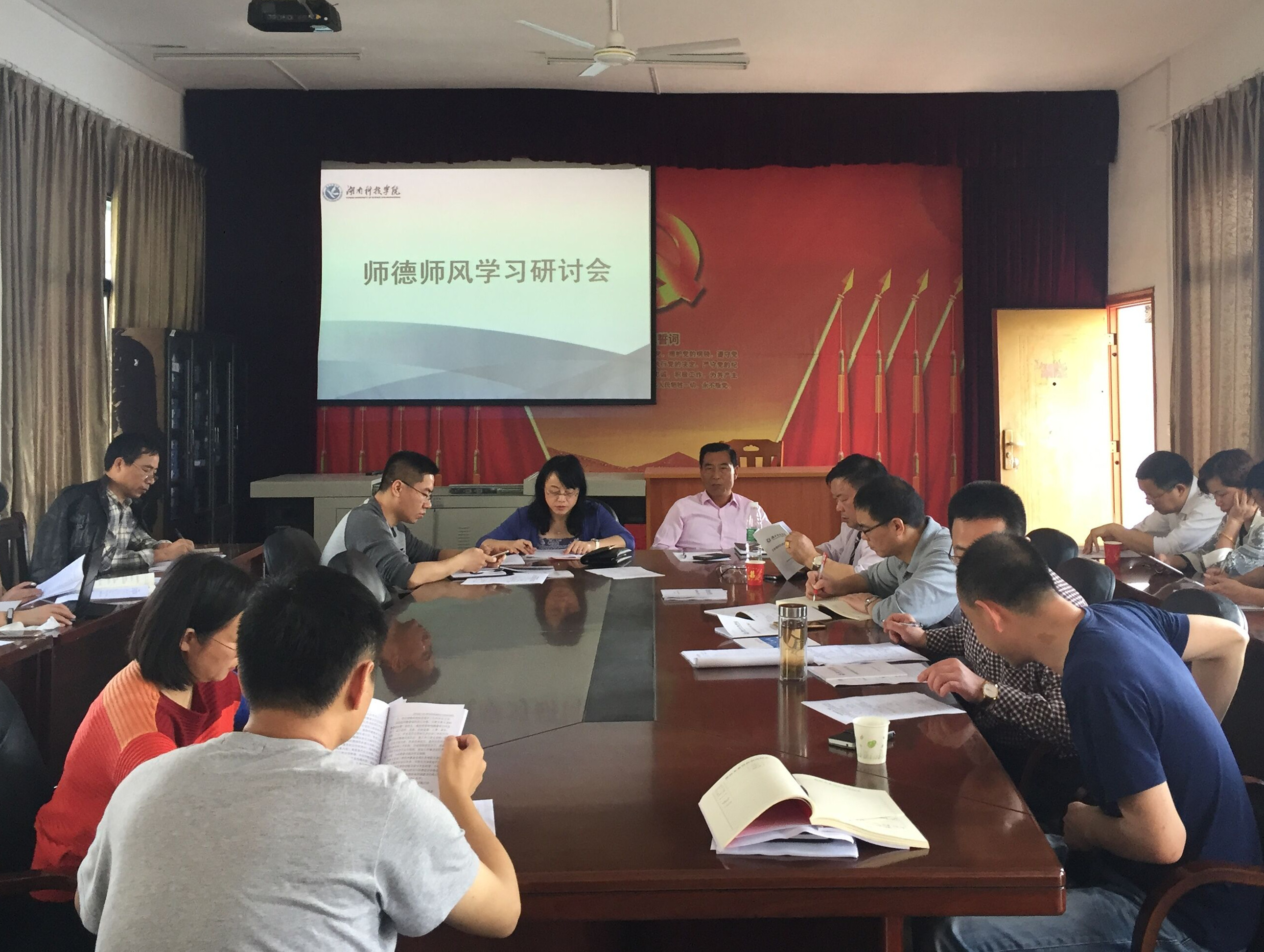 本网讯 为了贯彻落实全国高校思想政治工作会议,进一步加强学院教师职业理想和职业道德建设,增强广大教师教书育人的责任感和使命感,助力人才培养质量的提升,促进学院教学、管理等各项事业科学发展,4月19日,马克思主义学院在鹤鸣楼召开了师德师风建设专题研讨会,全院教师与会。