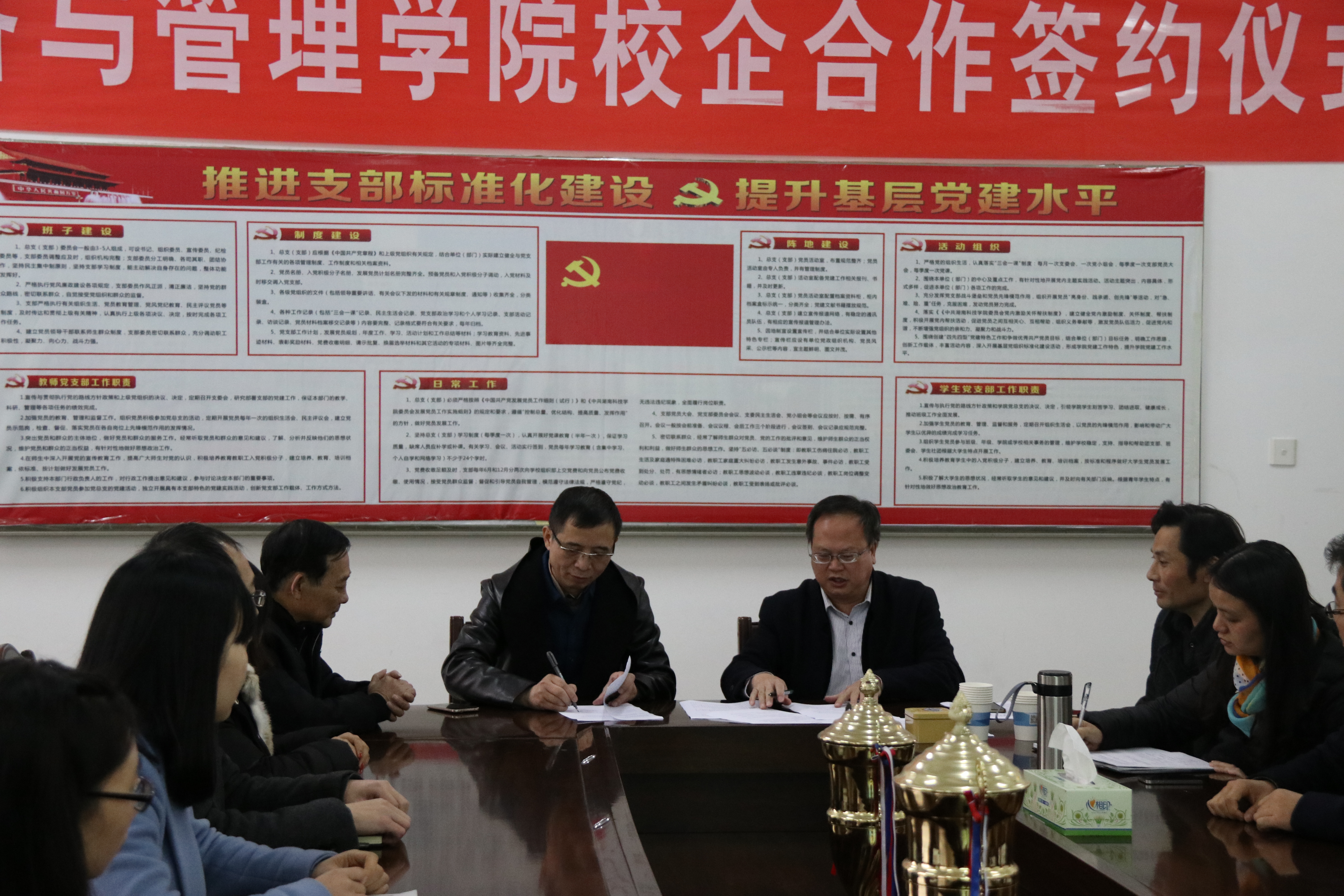 仪式上,袁岳驷介绍了该院经济学、管理学等学科专业的科研团队情况,近年来取得的科研成果,学院支持和服务地方政府、企业的有关举措,以及学校鼓励和支持教授博士承接各类横向研究课题的政策。近年来,该院教师先后承担了永州市财政局、永州市住房公积金管理中心、湖南中烟零陵卷烟厂等单位委托的科研项目10余个,课题经费近100万。袁岳驷表示此次委托协议的签订标志着该院横向研究取得又一重大成果,该委托的项目系永州市近期重点规划项目,计划在永州各县区打造一批特色小镇。协议目标为5个特色小镇规划研究方案,每个资助5万元,若获得永州市立项建设将追加30万元/个,预计经费为175万元。