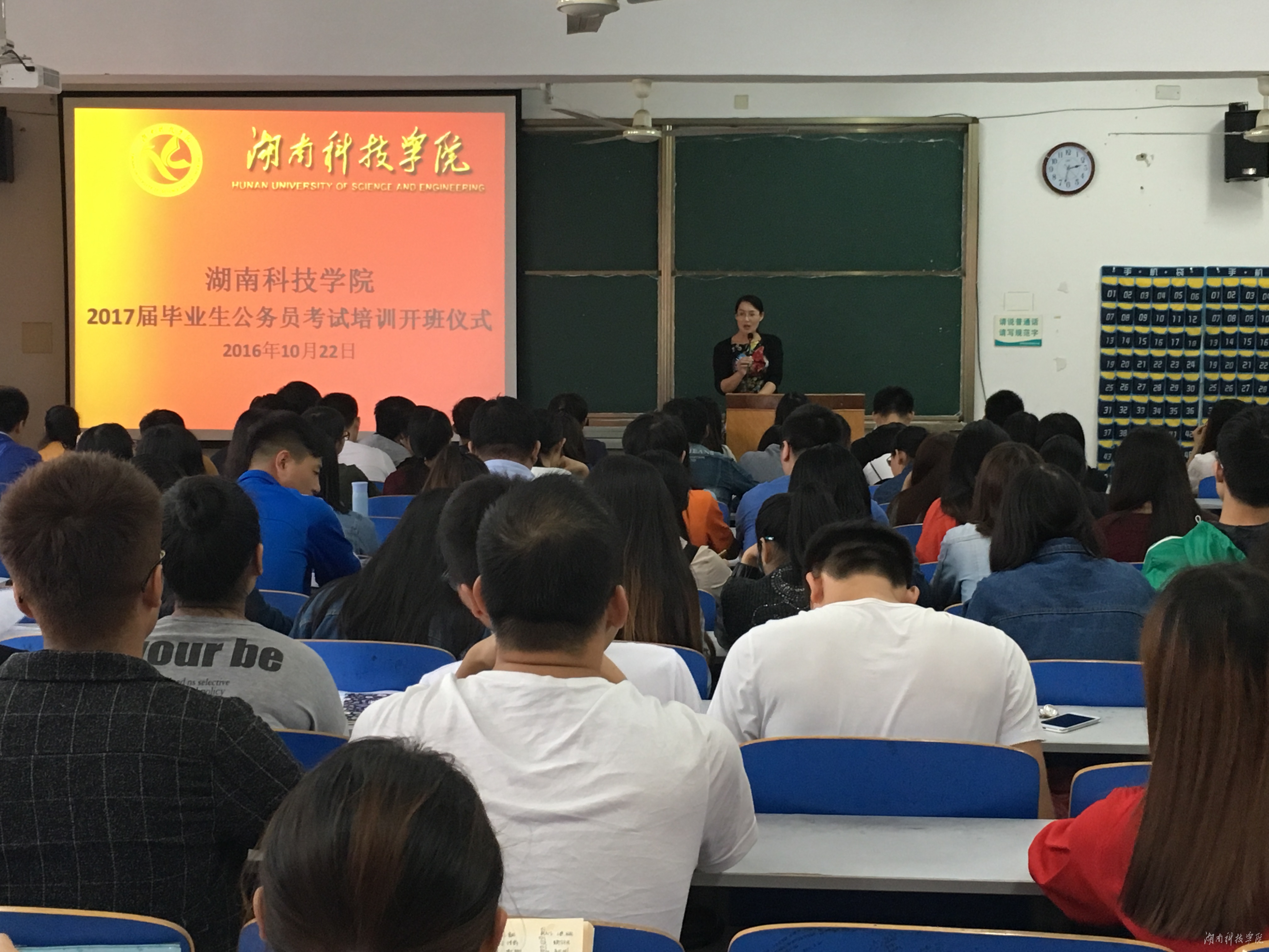 本网讯 为提升毕业生就业能力,助力我校毕业生就业求职,10月22日,由就业创业指导中心主办的2017届毕业生公务员考试培训班在明理楼502正式开班,来自各教学学院的200余名毕业生参加培训。