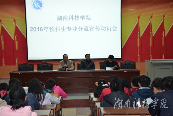本网讯(通讯员 代军垒)3月10日晚,我校2015级预科生专业分流宣传动员会在明德楼报告厅举行。本次动员会由人文与社会科学学院院长潘雁飞主持,化学与生物工程学院、马克思主义学院等相关领导参加。
