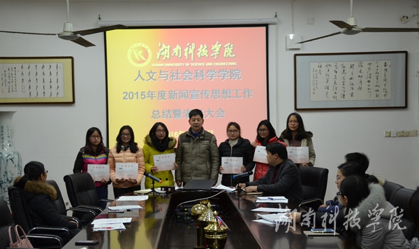会议对该院2015年的新闻宣传工作做总结,并表彰了2015年度的为该院新闻宣传思想工做出努力的学生,授予龙满金等16名同学“优秀通讯员”称号。
