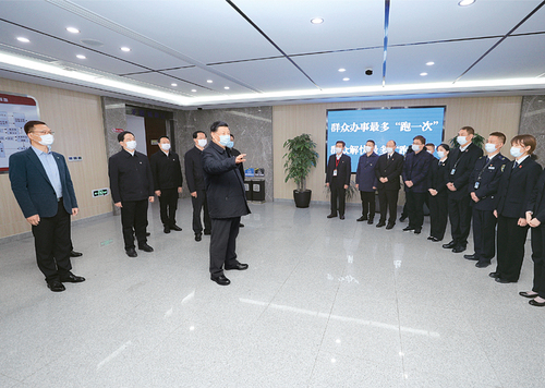 2020年3月29日至4月1日,中共中央总书记、国家主席、中央军委主席习近平在浙江考察。这是3月30日,习近平在湖州市安吉县社会矛盾纠纷调处化解中心,了解群众矛盾纠纷一站式接收、一揽子调处、全链条解决模式运行情况。 新华社记者 鞠鹏/摄