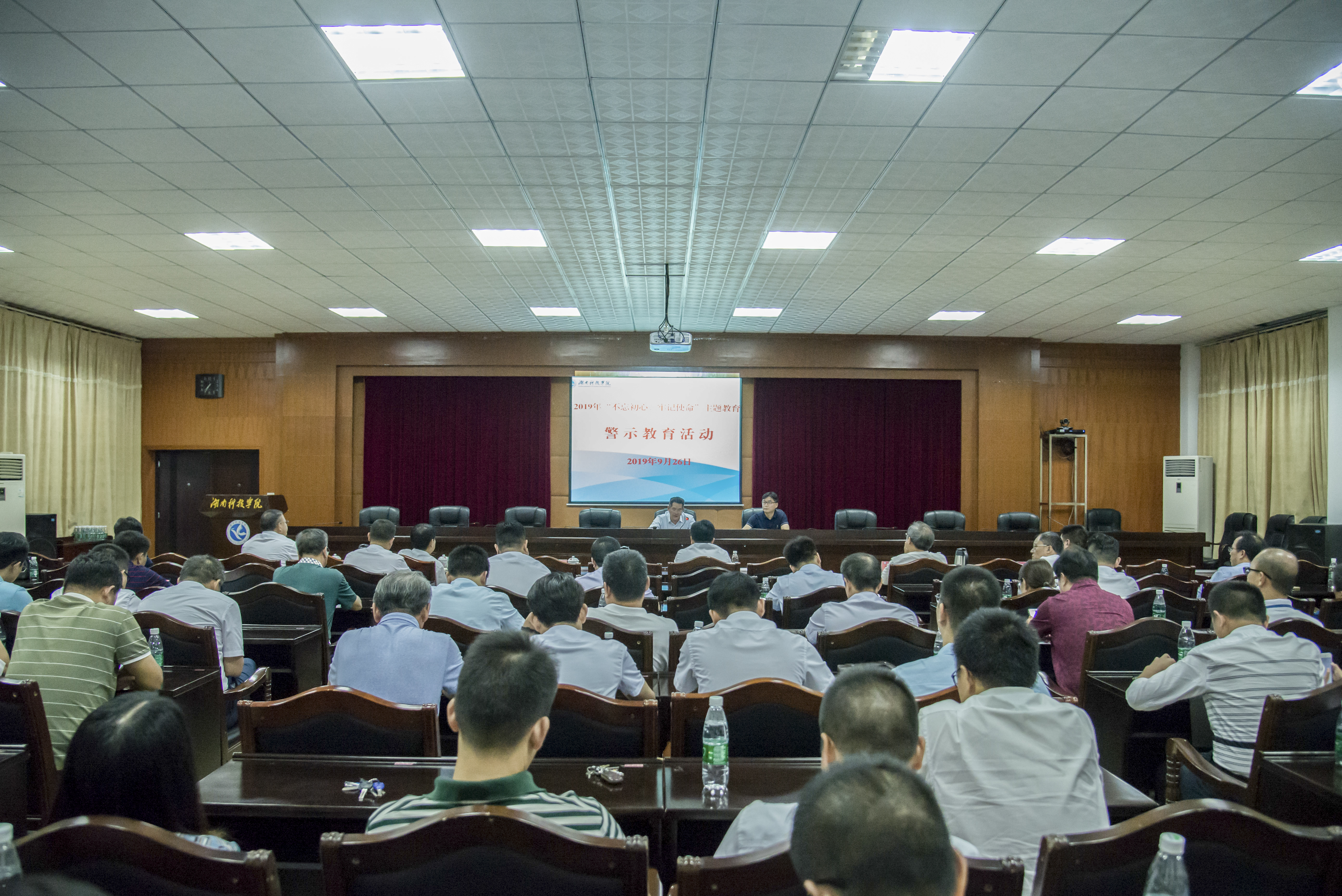 本网讯 根据“不忘初心、牢记使命”主题教育工作安排,9月26日晚,学校在八楼一会议室组织开展专题警示教育,党委副书记、校长李钢,纪委书记彭立威,副校长郑山明、李常健、程智开以及全校副处级以上干部参加。