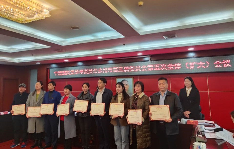 本网讯 3月21日上午,民革永州市第三届委员会第五次全体(扩大)会议在冷水滩召开,会议表彰了先进。民革新利·体育支部荣获先进支部,这也是民革永州市委2013年开展争先创优以来民革校支部第五次荣获先进支部。陈义勇荣获优秀党员,方芳荣获优秀党务工作者,民革校支部提交的调研报告获2020年度永州市政协好调研二等奖。