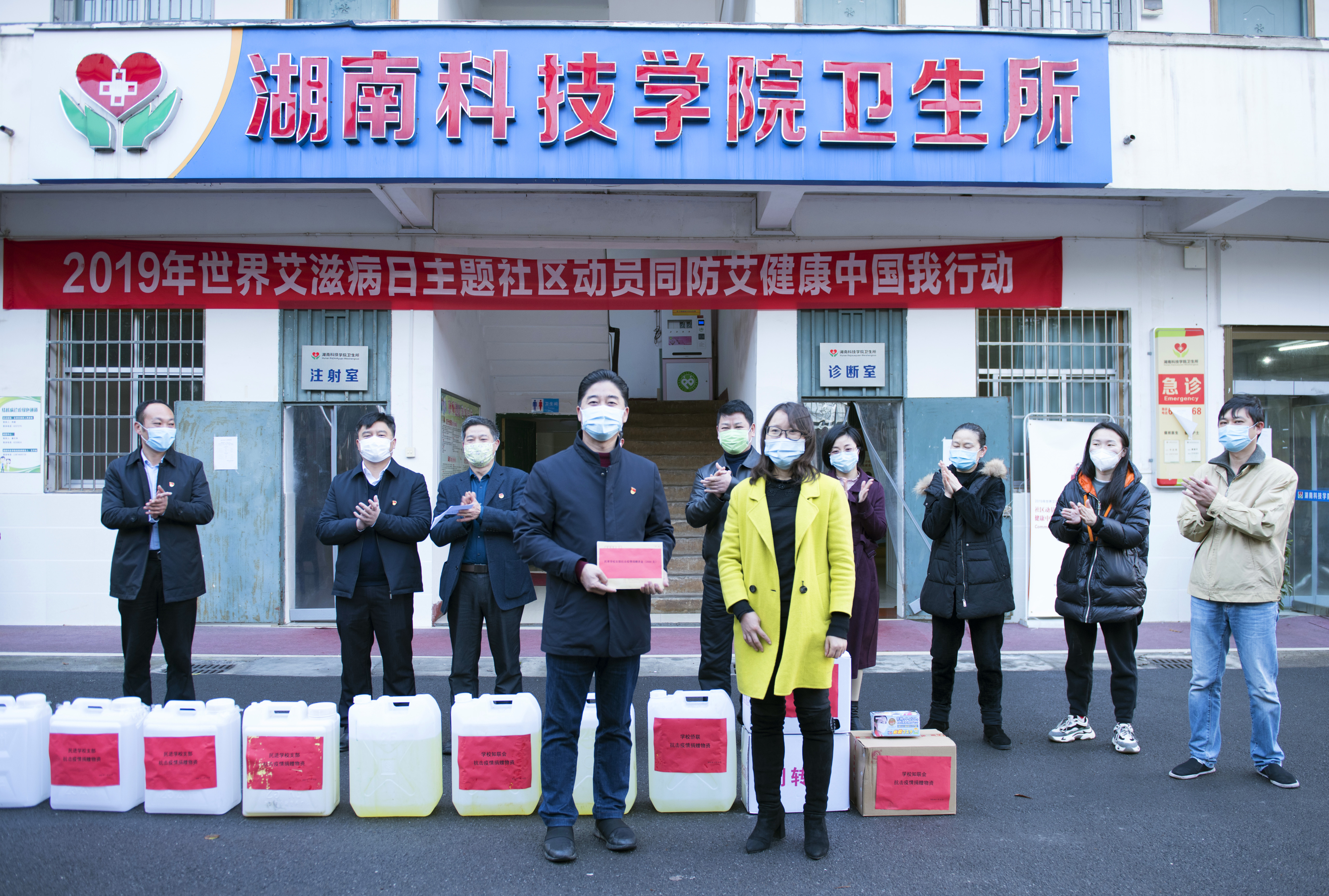 本网讯 2月14日,我校民主党派和统战团体向学校捐赠了一批新冠肺炎疫情防控物资,校长李钢,党委副书记唐艳明,纪委书记彭立威,党委委员、副校长吴小林,党委委员、宣传统战部长杨涛,相关部门负责人以及民主党派和统战团体代表参加捐赠仪式,仪式由唐艳明主持。