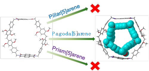 最近,团队成员通过延长侧链长度的策略,合成了巨大空腔尺寸的萘酰亚胺拓展柱[6]芳烃。研究发现该合成大环的空腔宽为18.769 Å,高为17.109 Å,可以选择性识别塔[5]芳烃,并在电子激发和电荷的流动领域具有潜在的应用。该研究获得了国家自然科学基金、湖南省自然科学基金,湖南省化学工程与技术应用特色学科等经费支持。