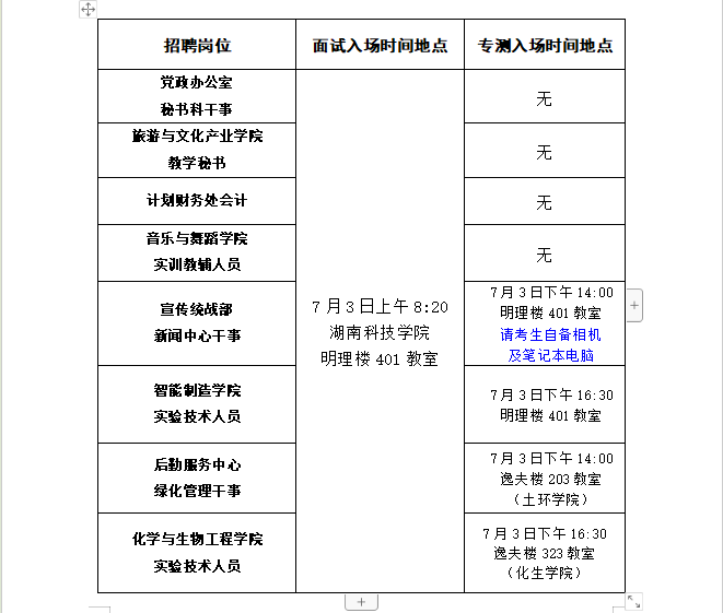 2.所有应聘人员须在规定时间到达候考室按区域就座,面试、专业技能测试抽签结束后到达规定地点的,按弃权处理,不得参考。考试期间,考点实行全封闭管理和全程监控,非应聘人员和考务人员不得入内。请应聘人员遵守考试纪律,诚信参考。