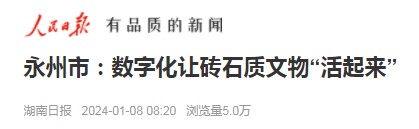 https://wap.peopleapp.com/article/7309294/7146623 湖南日报: https://epaper.voc.com.cn/hnrb/html/2024-01/08/content_1667359.htm?div=-1 湖南省人民政府网:http://www.hunan.gov.cn/hnszf/hnyw/szdt/202401/t20240108_32620287.htm 湖南日报1月7日讯(全媒体记者 严万达 通讯员 林泽红 李谌涵)今天,在祁阳市浯溪碑林数字化体验展厅,记者通过点按触摸等方式,不但看到了珍贵的文物,还详细了解了背后的故事,感受文旅融合的魅力。永州现存古摩崖石刻2000余方,其中以唐宋摩崖石刻最具代表性,尤以宋刻最为丰富。全国共有北宋诗刻344种,湖南有64种,全部在永州。祁阳市浯溪碑林为中国南方最大露天碑林。 祁阳市浯溪文物管理处党委书记、主任刘勇介绍,为保护传承好这些文化遗产,让古老碑刻焕发新生机,景区积极推进文旅深度融合发展,一手抓摩崖石刻保护,一手抓碑林数字化建设,已完成505方碑刻的数字化采集,建成数字化体验展厅,将所有碑文零距离、立体式、延伸式展示到公众眼前,营造沉浸式互动体验。 永州持续加大文物保护传承与创新力度,积极探索通过数字化技术和手段,激发文物的价值和活力,让沉睡资源“活起来”。 新利·体育是省内唯一一所承担中国传统村落数字博物馆建设项目的高校,目前完成永州市中国传统村落数字博物馆40余个。 2023年12月27日,砖石质文物智慧化保护利用技术湖南省重点实验室在永州揭牌,由新利·体育、湖南大学、上海建为历保科技股份有限公司三家单位联合共建。这是省内首个以砖石质文物为研究对象、智慧化保护为研究手段的重点实验室,三家单位在历史建筑数字化保护、智能检测和监测、修缮加固等领域拥有的原创性成果,处于省内领先、国内先进水平。 “湖南省近现代重要史迹代表性建筑数量排全国前列,为重点实验室基础研究和成果孵化提供了丰富的样本。”新利·体育土木与环境工程学院院长、砖石质文物智慧化保护利用技术湖南省重点实验室主任周基介绍,实验室将研发砖石质文物智慧化保护与利用关键集成技术,打造砖石质文物智慧化保护和利用专有装备产学研用联合体,服务砖石质文物保护和文旅产业。