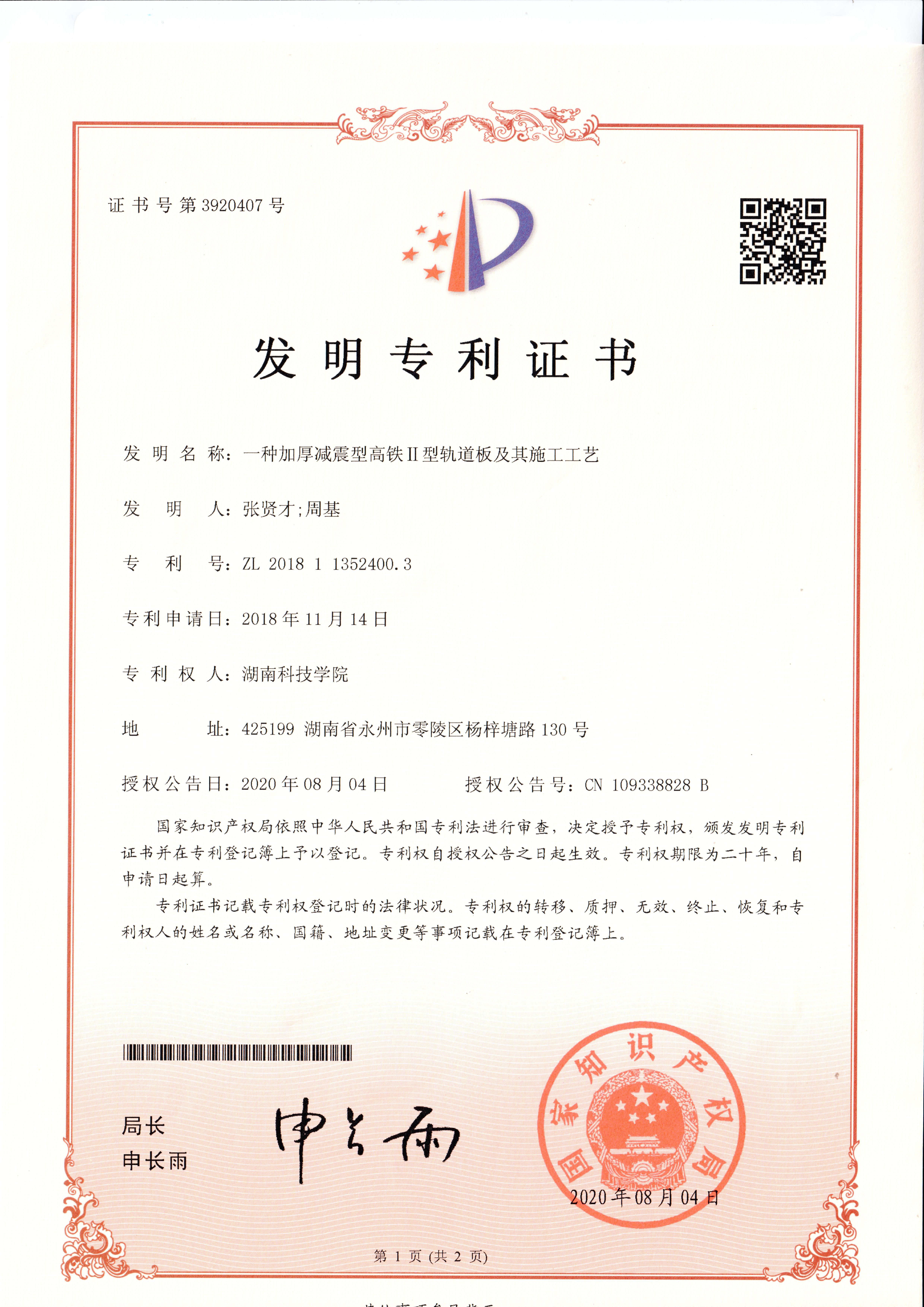 李仁平专利ZL 202020122253.7一种透水抗裂型运动场地-实用新型专利证书(签章)