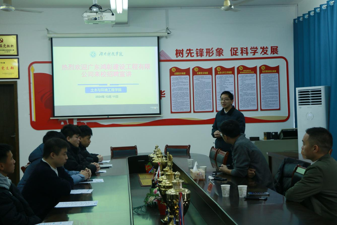 本网讯(通讯员 王晶晶 12月11日,广东鸿彰建设工程有限公司我院招聘2025届毕业生,招聘会在逸夫楼213会议室进行,副院长胡佳星出席并表示欢迎。