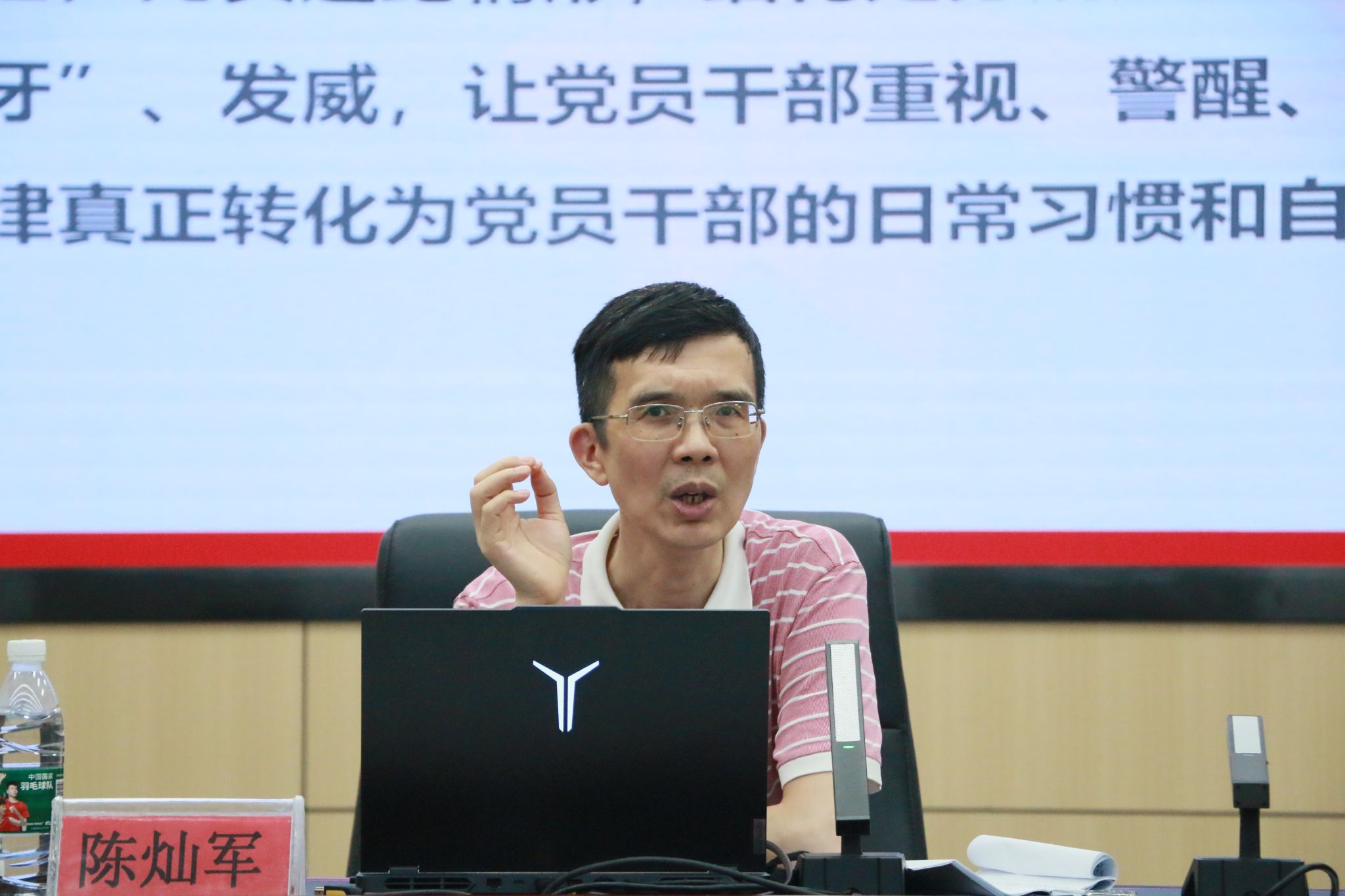 陈灿军分别从新修订的《中国共产党纪律处分条例》的重要意义、准确把握《条例》修订的主旨要义以及践行要求、做廉洁自律的新时代大学生三个方面,结合大量生动鲜活的党史故事和发人深省的警示案例,生动诠释了严明党的纪律和规矩是我们党的优良传统和独特优势,明确强调了大学生党员加强纪律教育的必要性和重要性。