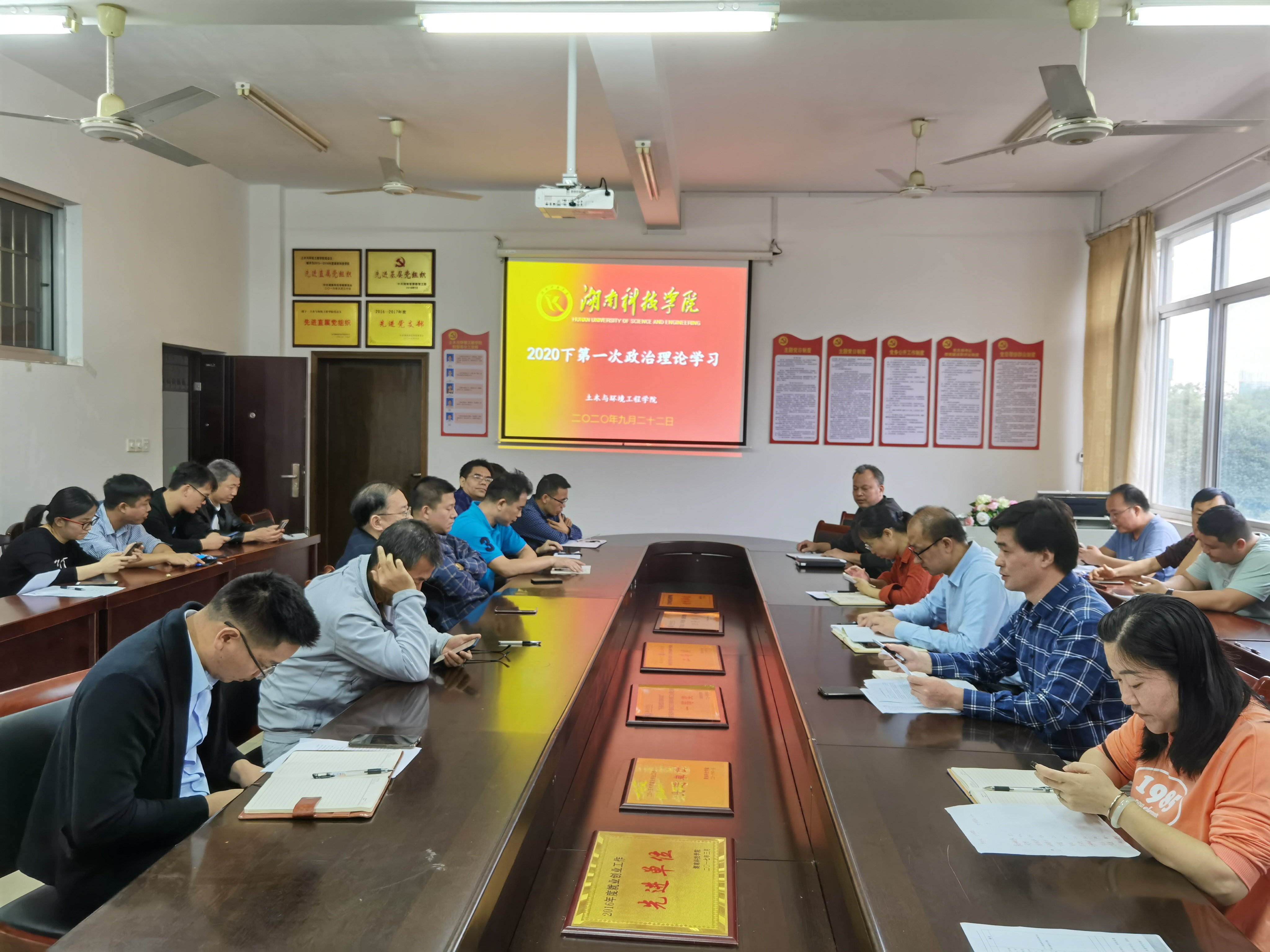 本网讯 (通讯员 谢娟)2020年9月23日下午,土木与环境工程学院全体教师于逸夫楼213进行本学期第一次政治理论学习,学习会由该院党总支书记张俭民主持。