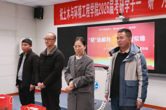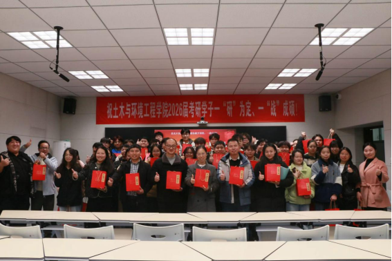 本网讯(通讯员 廖贤毅 彭语彤 )“加油!”“上岸!”“前程似锦”……在阵阵鼓励、祝福声中,12月17日,土木与环境工程学院一年一度的2026届“‘研’途顺利 前程似锦”考研暖心送考活动在逸夫楼403教室如约举行。学院全体领导,辅导员、班主任、任课老师和考研学子们参加。
