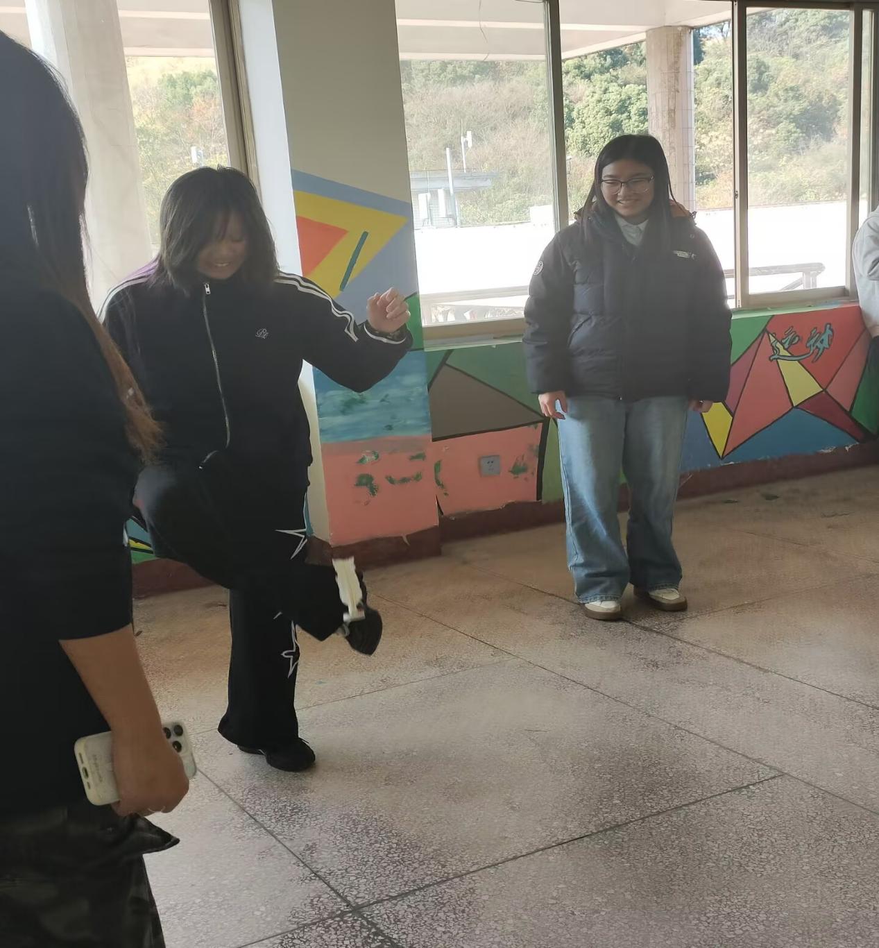 12月19日,新利·体育“一站式”学生社区“毽趣闯关,协作共赢”趣味踢毽子活动在桃一学生宿舍七楼青...