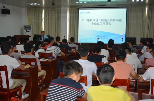 本网讯 为使学生了解机械制造前沿,增强专业感性认识,开阔专业学习视野,培养创新能力,加强理论与实践相结合,以及更好地学习后续专业理论课程与职业技能课程。机械工程系全体教师与同学于2017年6月5日上午10:00在知行楼107会议室召开2016级机械设计制造及其自动化专业见习动员会议。会上详细安排部署了2016级机械专业6月5日至6月9日专业见习工作,并就见习目的、要求、考核、纪律等内容做了详细讲解。