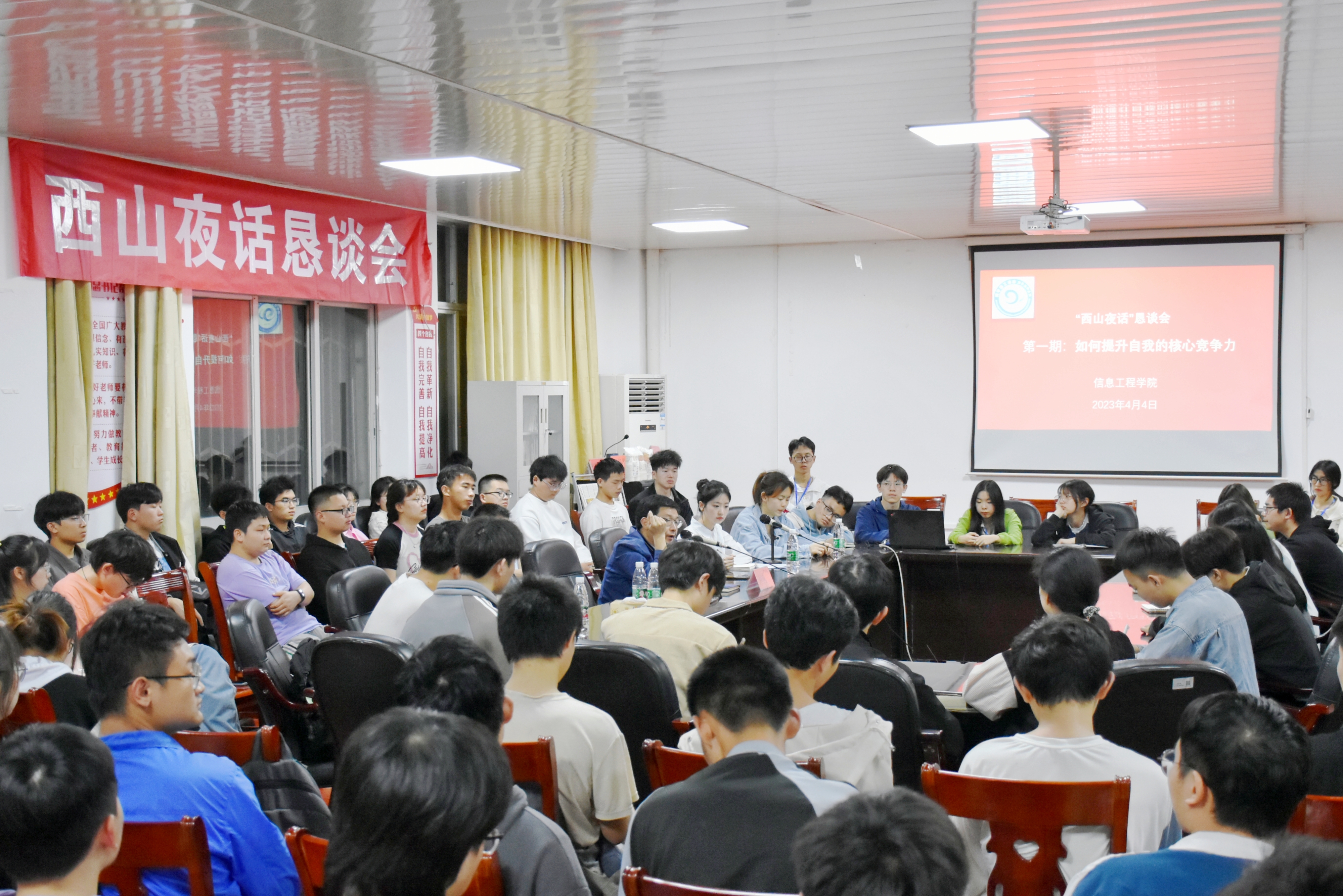 本网讯(通讯员 刘兵兵)4月4日,学院第一期“西山夜话”恳谈会如约而至,学院院长尹向东担任首场开谈嘉宾,来自学院各年级的120余名学生参加,师生们围绕如何提升自我核心竞争力的主题,敞开心扉,畅所欲言,共话成长。