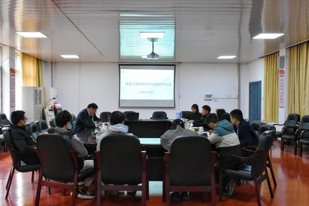 本网讯(通讯员 郭靖 刘兵兵)2月26日,学院召开毕业班考研指导专题会议。院党总支书记刘国华、副书记夏汉伟,2023届毕业班辅导员、班主任和部分考研学生参加。会议由夏汉伟主持。