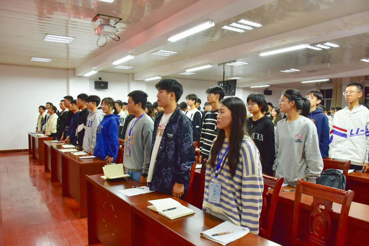 本网讯( 郭靖 向慧蓉)10月13日晚,我院召开第二届团学联见面大会,院党总支副书记夏汉伟,院团总支书记郭洱鹏,院团总支、学生分会、青年志愿者服务团全体干部参加。